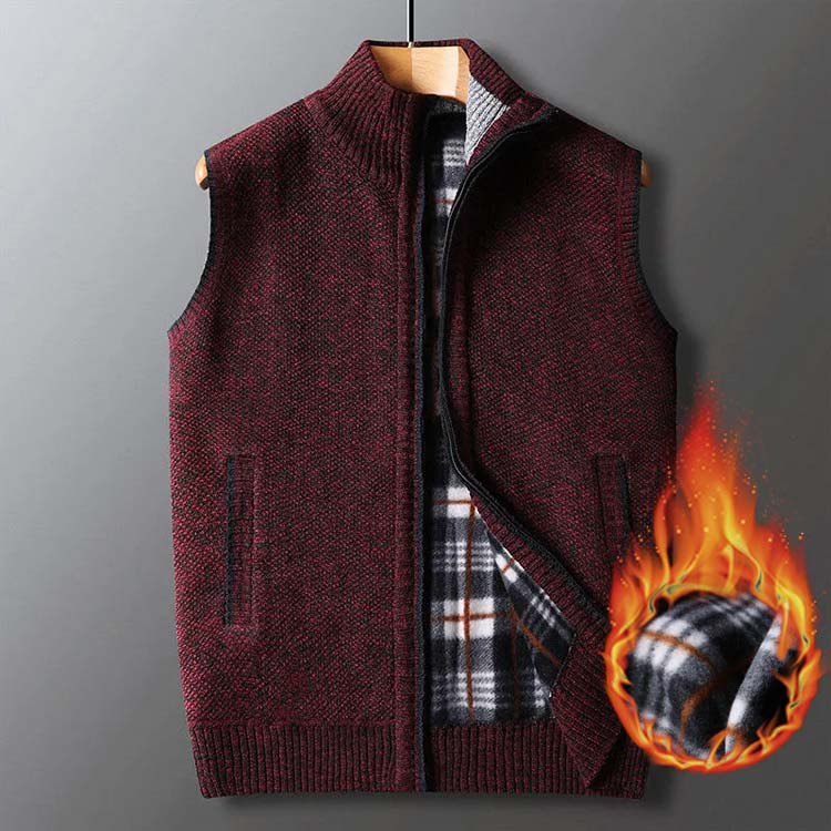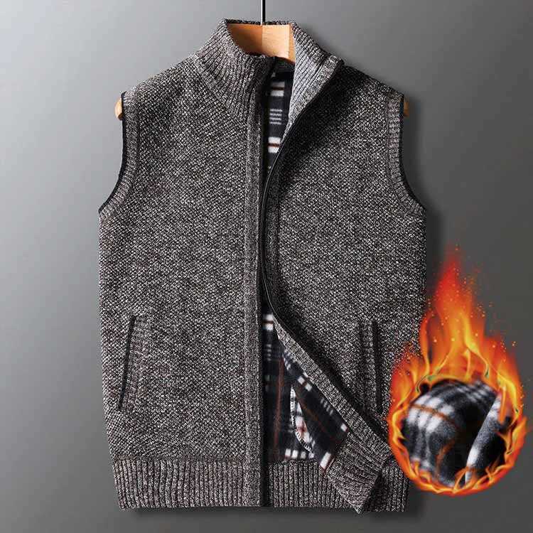 ファスナー ニットベスト 男性 かっこいい 袖なし メンズ 裏地フリース 裏起毛 スタンドカラー 厚手 立ち襟 ポケット付き ニットベスト あたたかい おしゃれ ノースリーブ シニアファッション 高齢者 普段着 部屋着 ホームウェア 入所 入院 外出着 秋