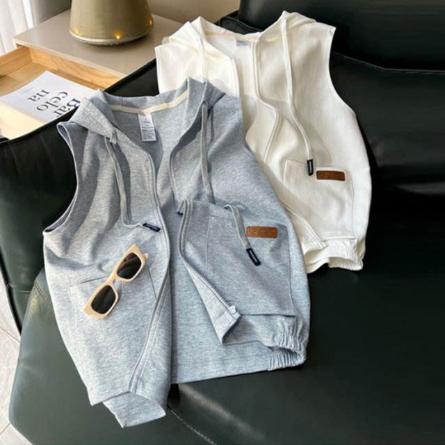 パーカー 夏用 パーカーベスト フード付き ノースリーブパーカー ベスト ジレ 前開き レディース スウエット トップス アウター ノースリーブ 羽織 ライトアウター ショート丈 裾ゴム スポーツウエア 春 夏 秋