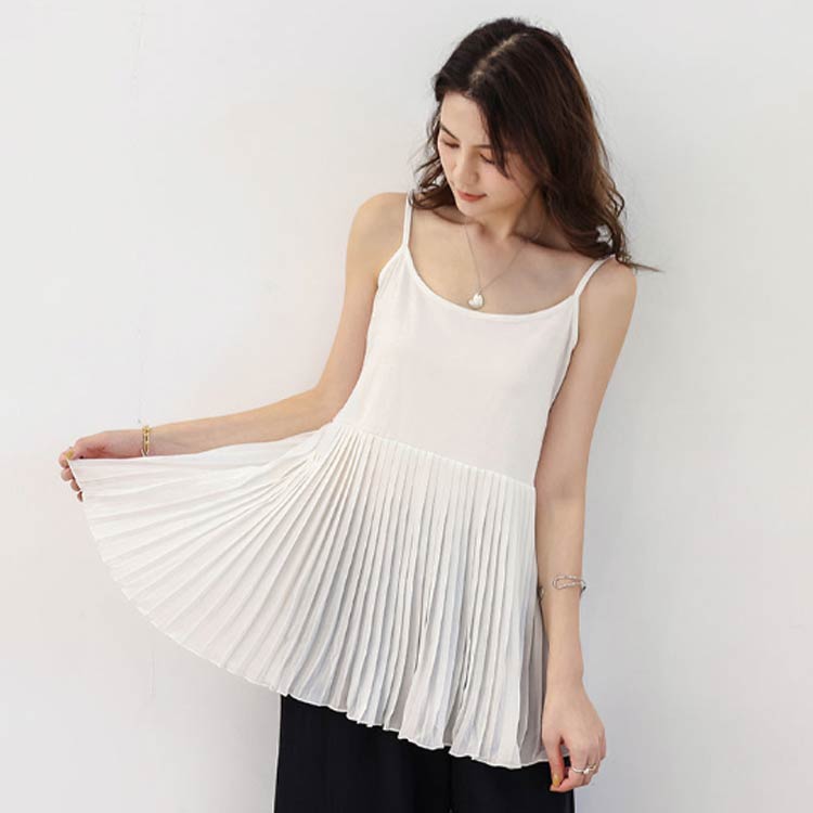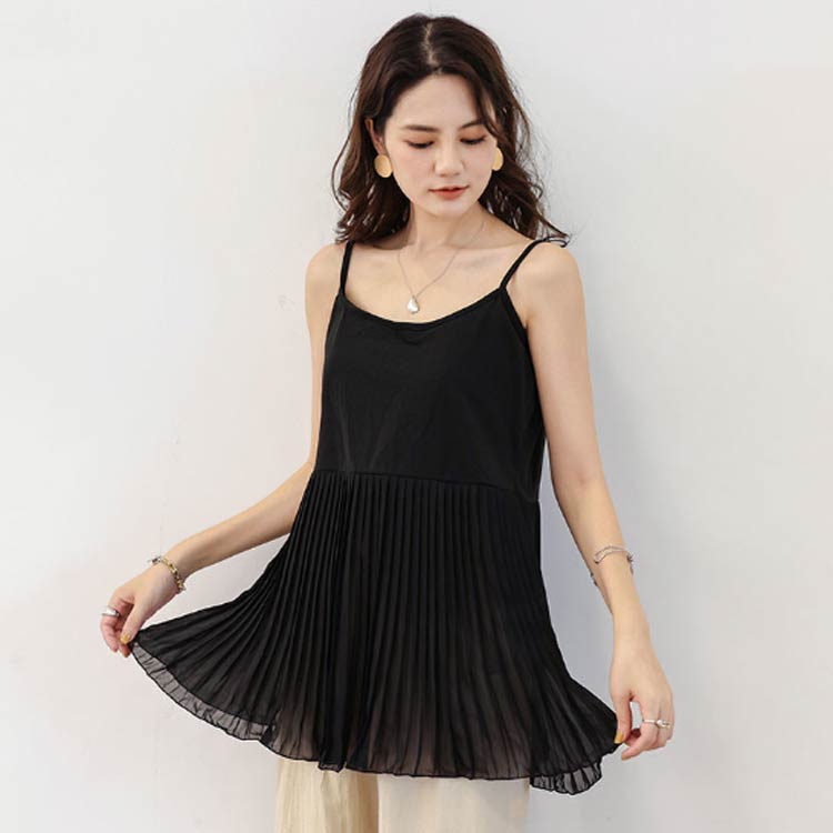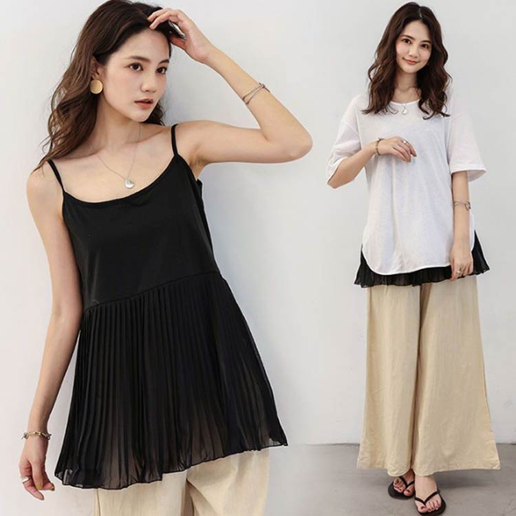 レディース 重ね着 キャミソール レイヤード レディース レイヤードキャミソール お尻が隠れる ロング 大きいサイズ 春 夏 つけ裾 プリーツ