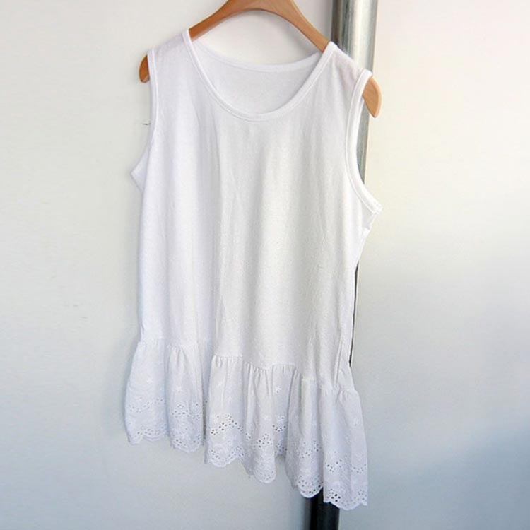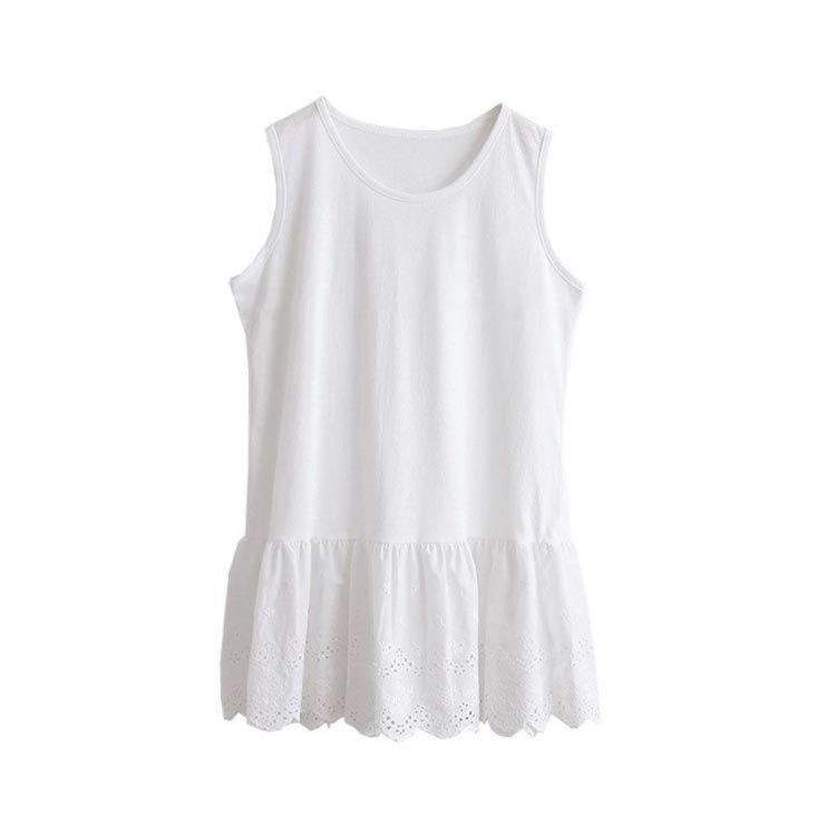 透かし編み裾デザイン L レディース フェミニン ノースリーブ レイヤードトップス レイヤード風 インナー ノースリーブトップス タンクトップ ホワイト カップなし M XL 重ね着