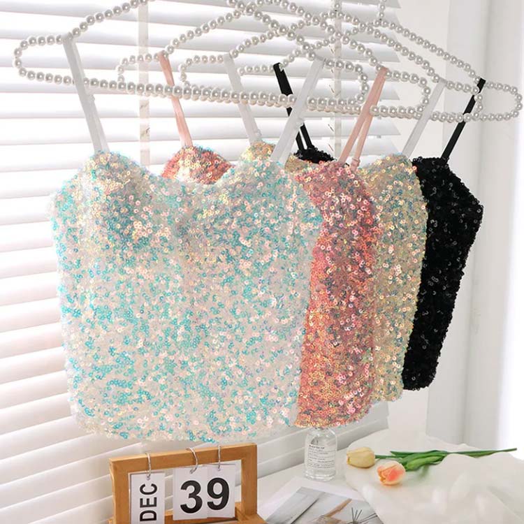 キャミソール スパンコール 春 カップ付き ダンス衣装 見せキャミ カップ付きキャミソール トップス ノンワイヤー ステージ衣装 ノースリーブ セクシー キラキラ 舞台衣装