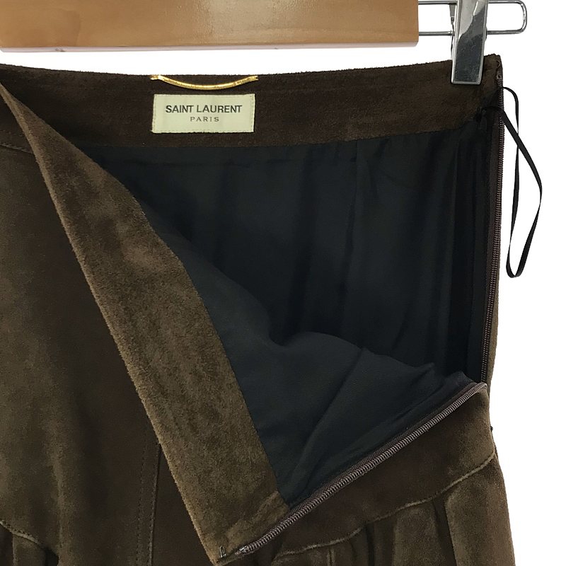 SAINT LAURENT PARIS / サンローランパリ | エディスリマン期 ゴートスエード レザー ティアードスカート | 36 | ブラウン | レディース