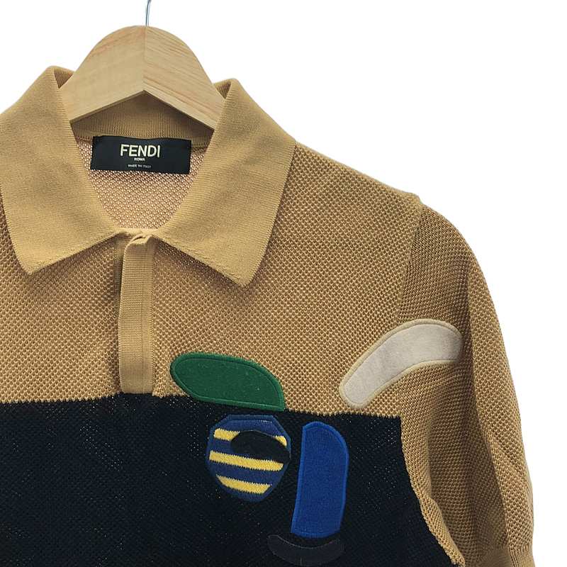 FENDI / フェンディ | フェイス ワッペン ニット ポロシャツ | 46 | ブラウン | メンズ