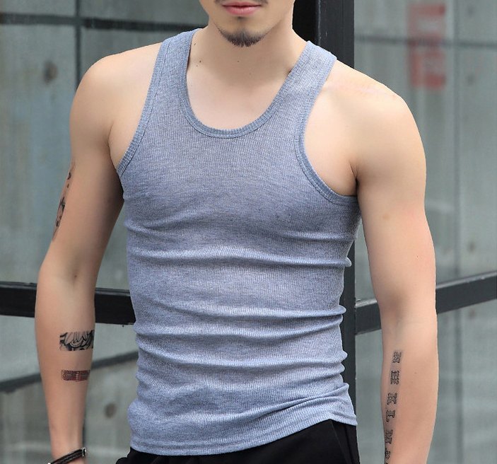 送料無料 タンクトップ トップス メンズ ラウンドネック ノースリーブ リブ 袖なし 大きめサイズ シンプル 無地 普段着 ジムウェア ランニング スポーツウェア