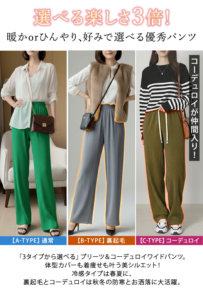 【50%OFFクーポンで1,740円】 裏起毛 ワイドパンツ レディース 秋 冬 秋冬 超細見え 繊細な プリーツ 美脚 プリーツパンツ リブパンツ 低身長 高身長 保温 ふわふわ ゆったり あったか ワイド パンツ 裏起毛パンツ ロングパンツ ボトムス 体型カバー