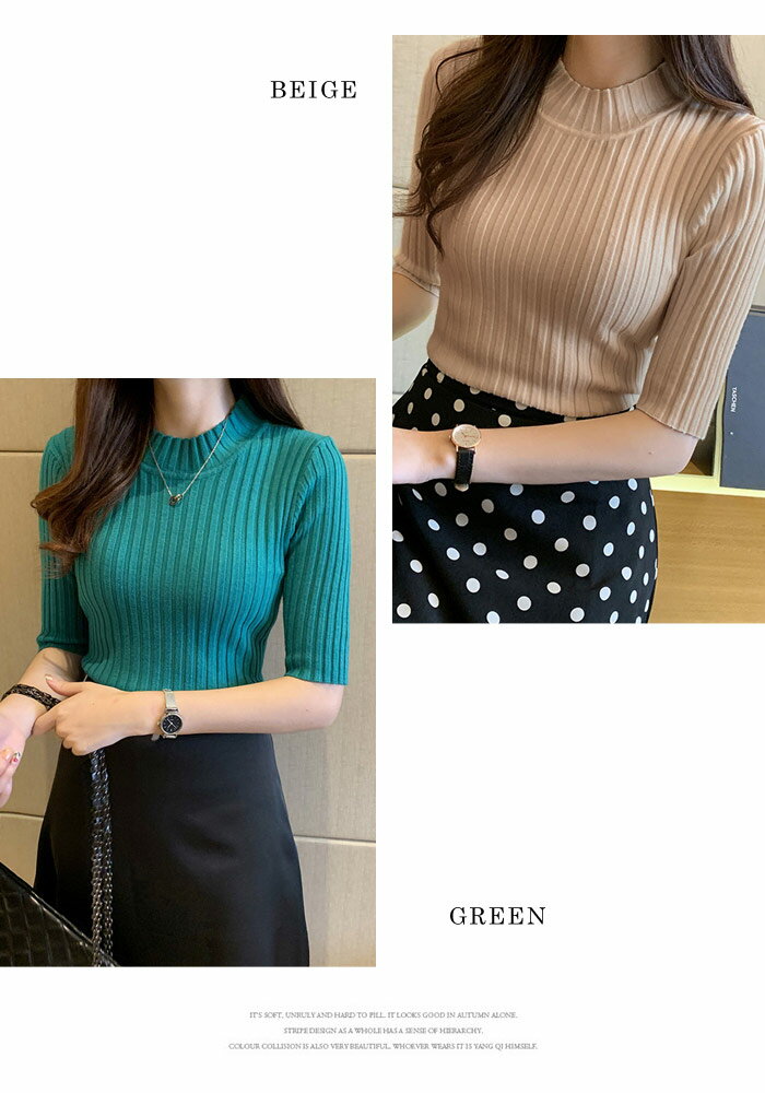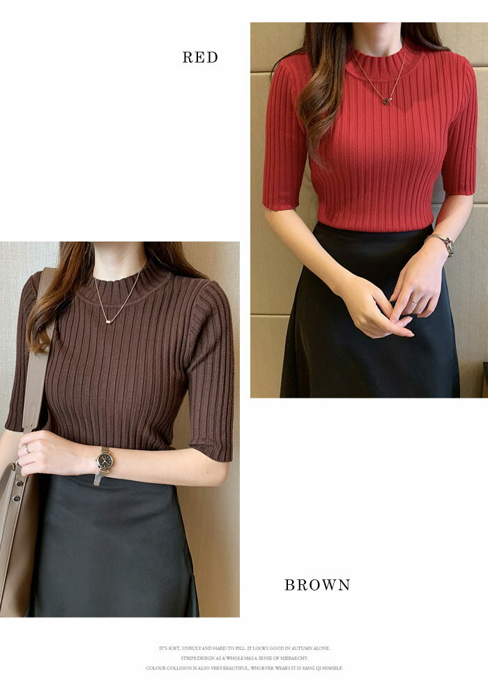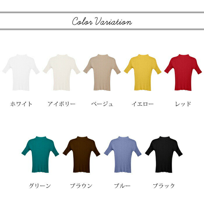 【1点1485円!2点購入&クーポン利用で】サマーニット レディース 半袖 ハイネック トップス ゆったり 二の腕カバー 半袖ニット パフスリーブ カットソー 5分袖 リブニット 袖長め 体型カバー きれいめ 大人 可愛い 上品 オフィスカジュアル 春夏