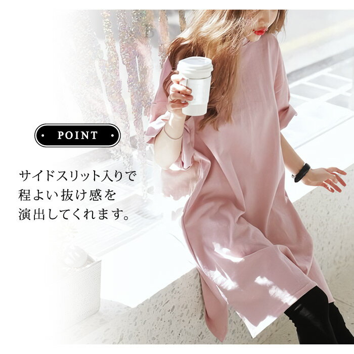【1点1860円!2点購入&クーポン利用で】ビッグTシャツ レディース オーバーシルエット ロング丈 かわいい オーバーサイズ チュニック 春 夏 春夏 半袖 カットソー Tシャツ 大きいサイズ シンプル 大きめ ゆったり ビッグサイズ 七分袖 スリット
