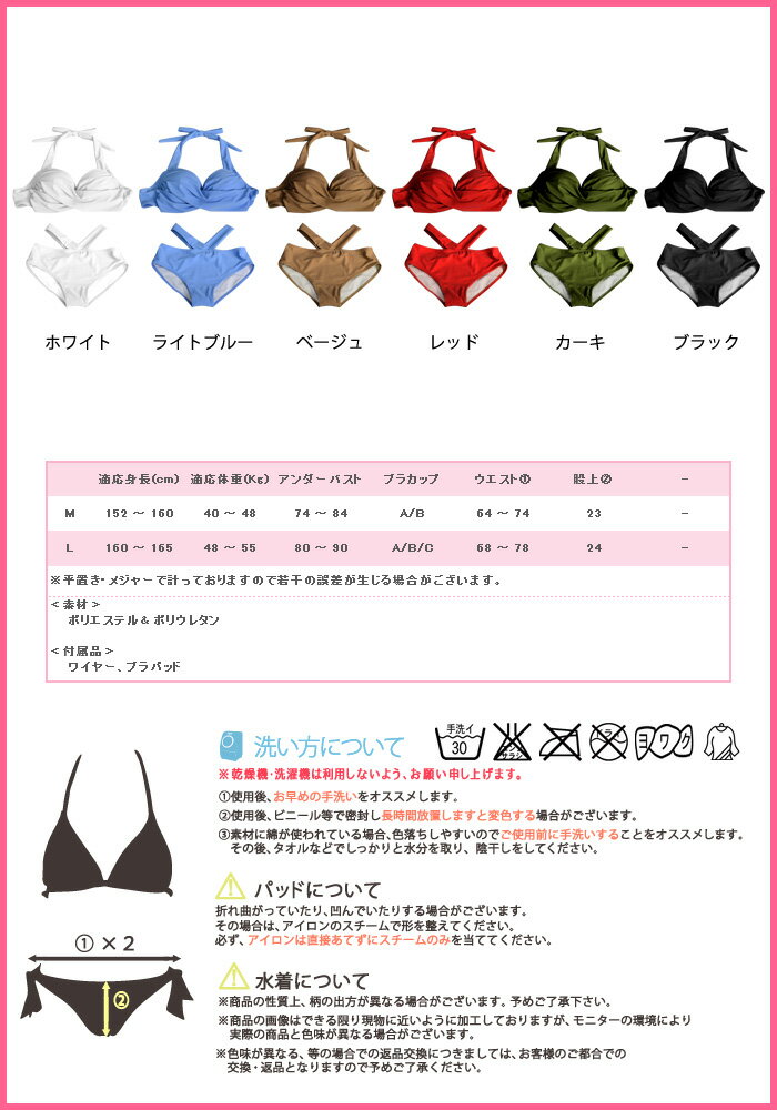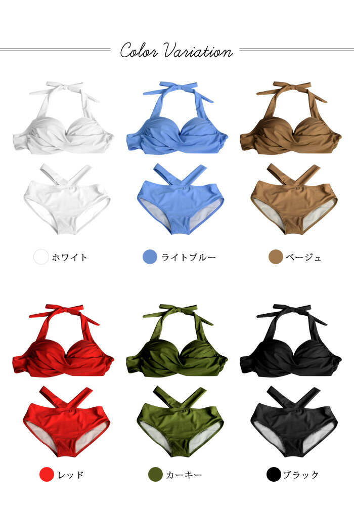 【メール便送料無料】水着 2024 水着セット レディース 春 夏 春夏 黒 白 ビキニ 無地 セット スイムウエア クロス ホワイト ブラック ブルー ベージュ レッド カーキ ビキニセット 大きい 大人用 女性 ママ用 海 プール スポーツ M L 大人 20代 30代 40代 OL ママ 母 あす楽