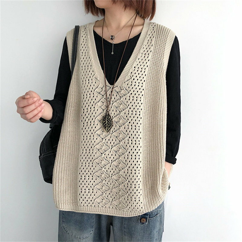 ニットベスト レディース チョッキ トップス Vネック ベスト 薄手 ゆったり セーター 無地 重ね着 秋コーデ ノースリーブ おしゃれ カジュアル
