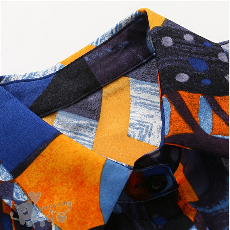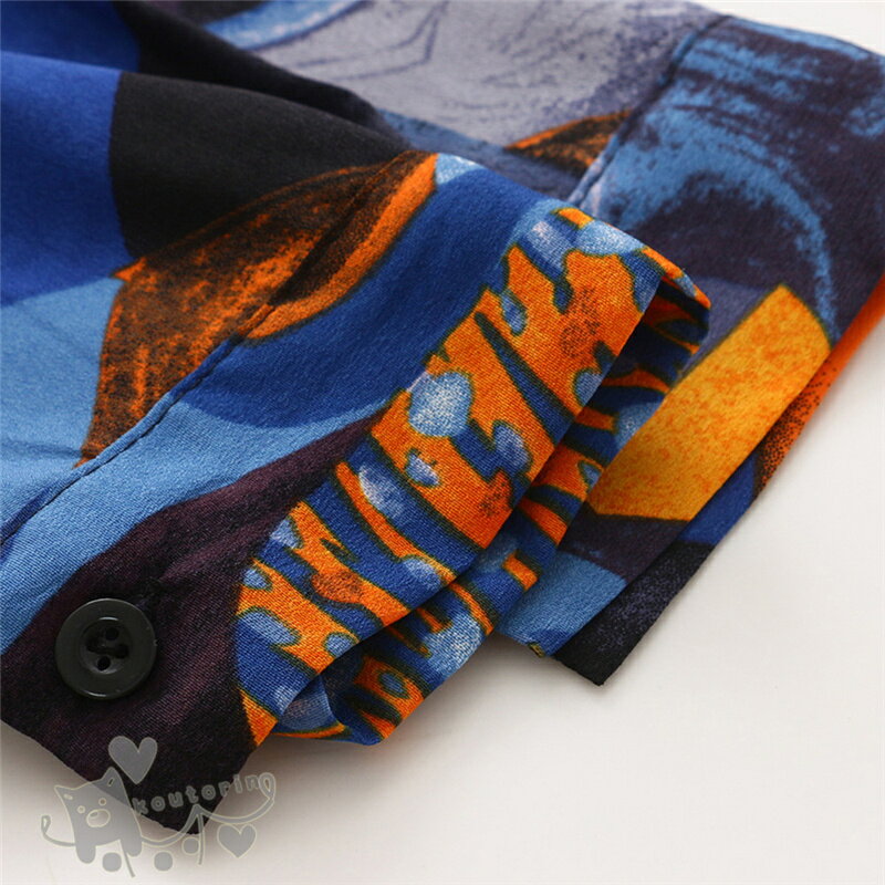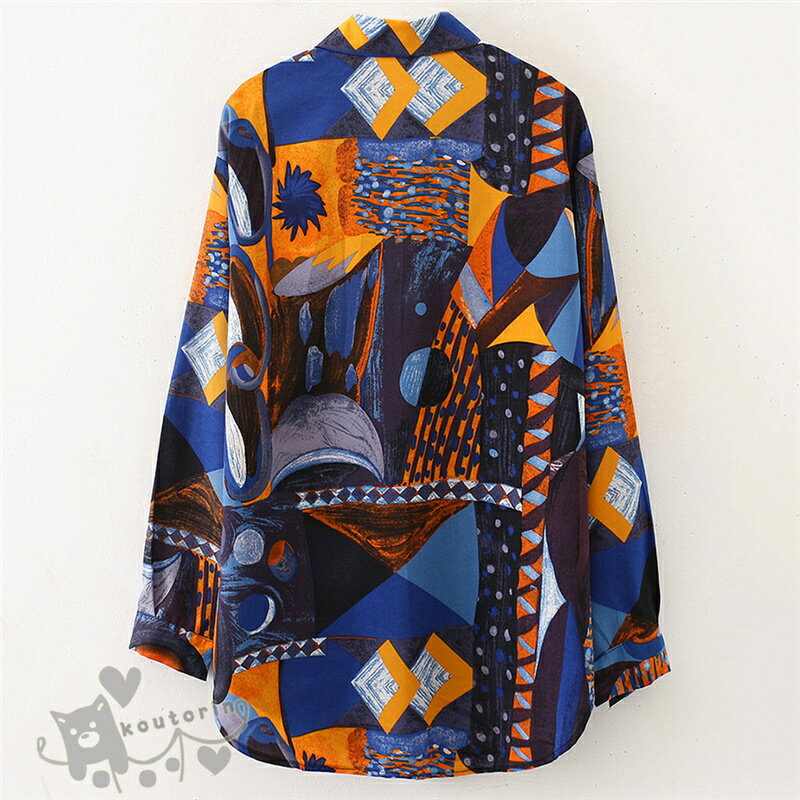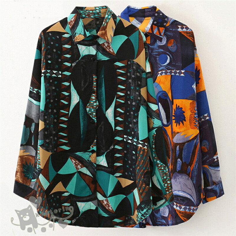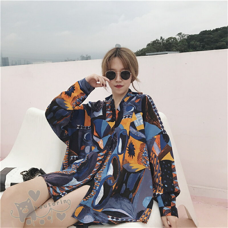 即納シャツ ダンス衣装 シャツ ブラウス 長袖 配色 総柄 幾何学模様 絵画 アート ビッグシルエット トップス ヒップホップ コスチューム 韓国ファッション かっこいい 個性的 服 原宿系 演出服 送料無料