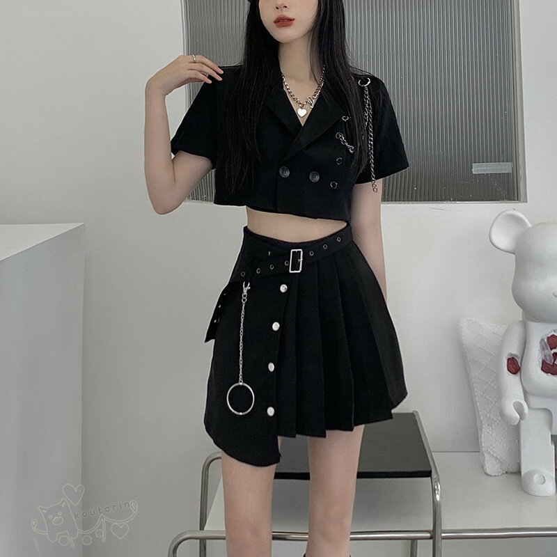 トップス スカート 黒 無地 ダンス衣装 カットソー レディース スーツ ヒップホップ ステージ衣装 イベント かっこいい 個性的 服 原宿系 演出服 送料無料