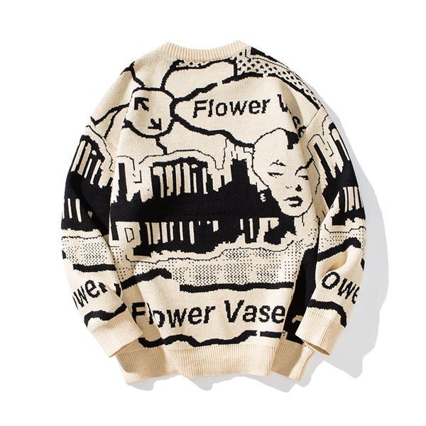 ニット ビッグシルエット ニット セーター 柄付き 韓国 ファッション 秋服 秋 秋冬 メンズファッション お洒落 バレンタイン 2023