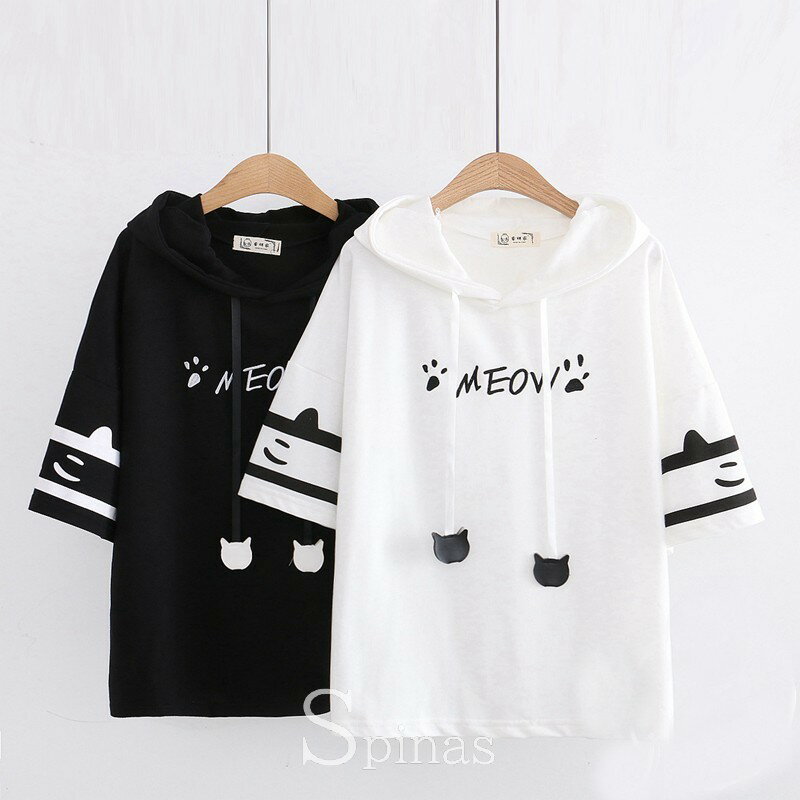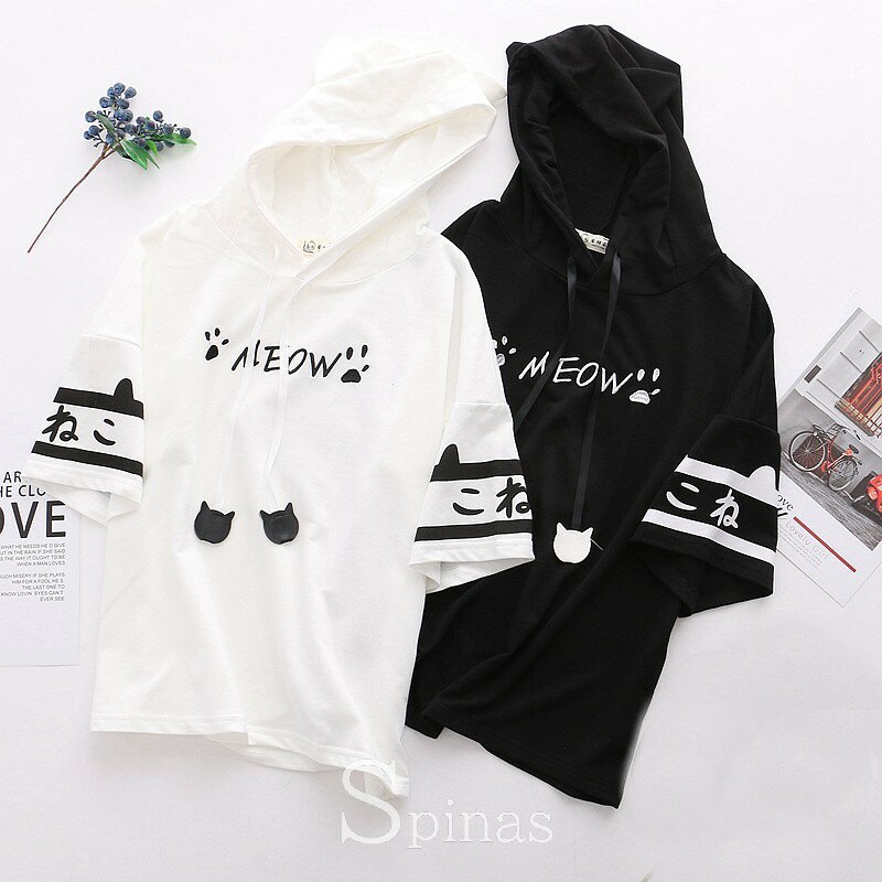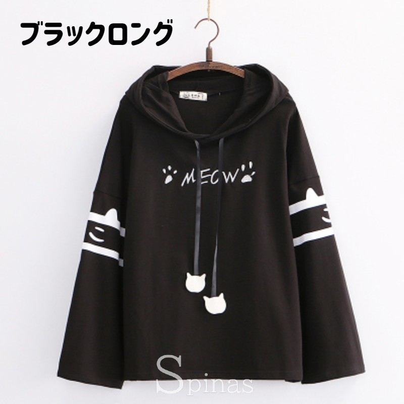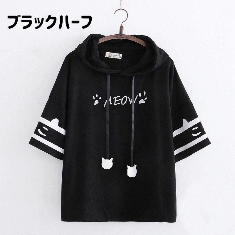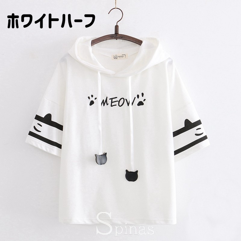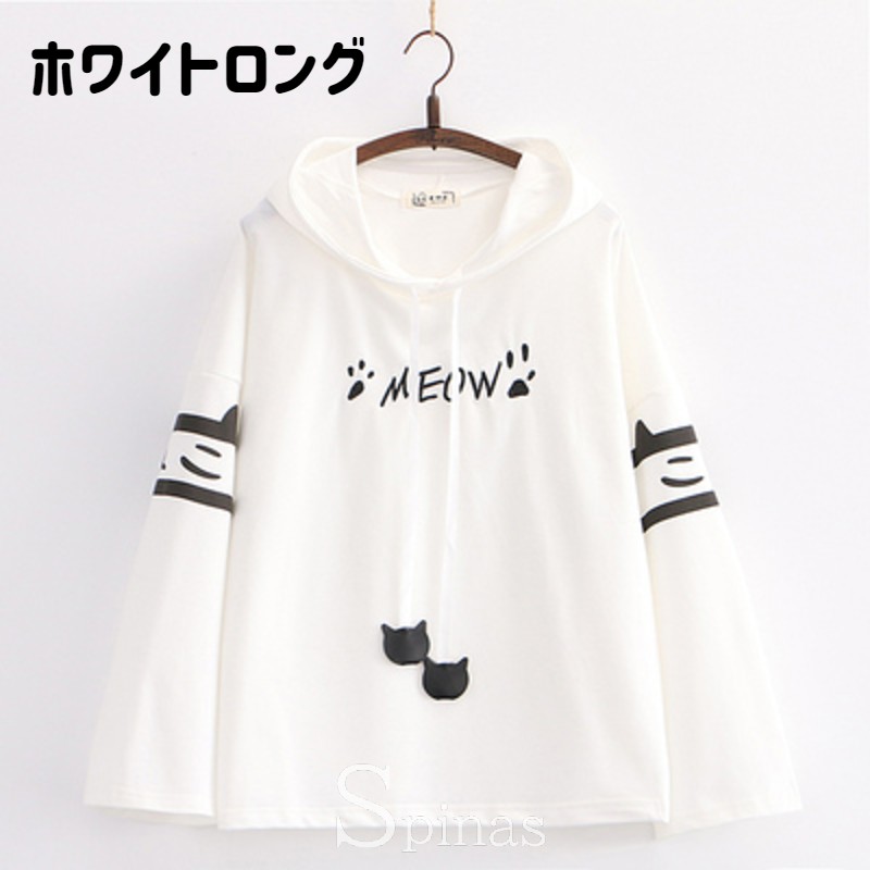 ぴょこんとした耳が可愛い ねこ耳 パーカー レディース ガールズ 半袖 長袖 猫柄パーカー プルオーバー フード付き ネコ トレーナー 猫 猫耳 ユニセックス トップス ペアルック