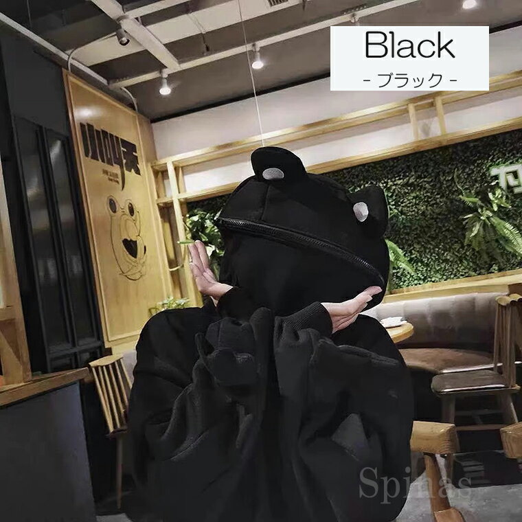 チャックを閉めるともはやカエルの着ぐるみ状態!全3色 ユニーク パーカー スウェット 男女兼用 トップス フード付き ロゴ 耳付き 水かき カエル ポケット付き 長袖 オーバーサイズ 大きいサイズ