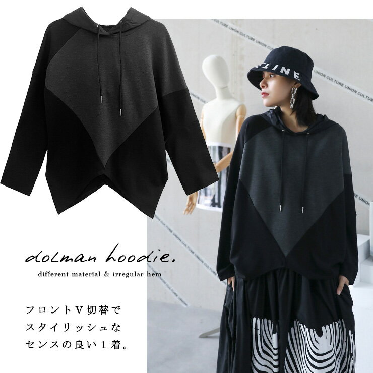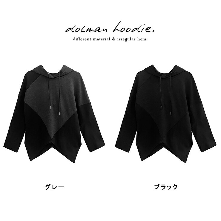 大きいサイズ レディース ドルマントップス オーバーサイズ パーカー プルオーバー 春 秋 LL 3L 4L 5L 6L ブラック グレー 新入荷 メール便不可