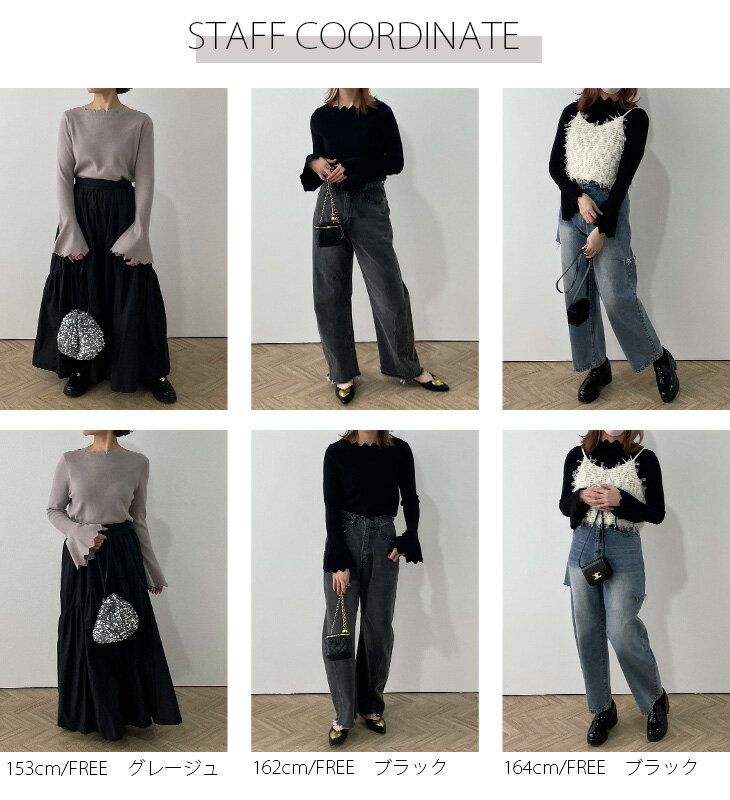 【半額クーポン対象】リブニット スカラップ 半袖 長袖 フレアスリーブ ボートネック フェミニン 華奢魅せ トップス レディース フリーサイズ メール便 2024春夏新作【lsss24-tp108】【即納&予約:6月27日入荷予定順次発送】【送料無料】ユ込2