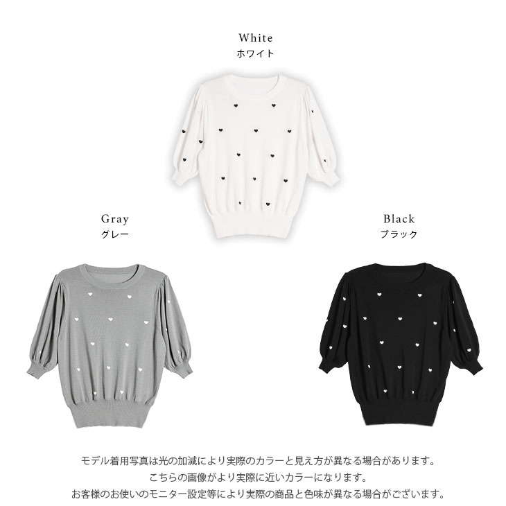 【半額クーポン対象】Lajour made in Japan 日本製 トップス サマーニット ハート 刺繍 パフスリーブ 大人かわいい トレンド レディース おしゃれ フリーサイズ メール便 ラジュール 2025春夏新作【laj-tp05c】【即納:1-5営業日】【送料無料】メ込2