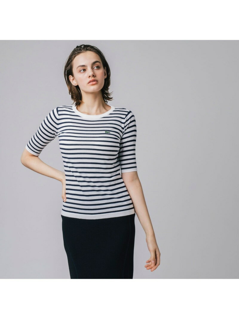 【SALE/40%OFF】UVカット 吸水速乾 ウォッシャブル COOLMAX クールマックス ボーダーニット半袖Tシャツ LACOSTE ラコステ トップス ニット グリーン ブルー オレンジ ホワイト レッド【RBA_E】【送料無料】[Rakuten Fashion]