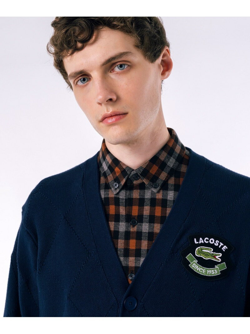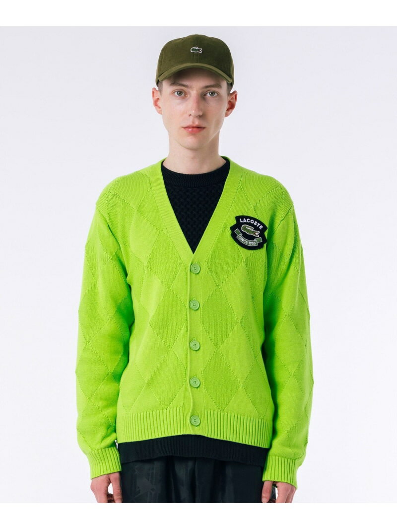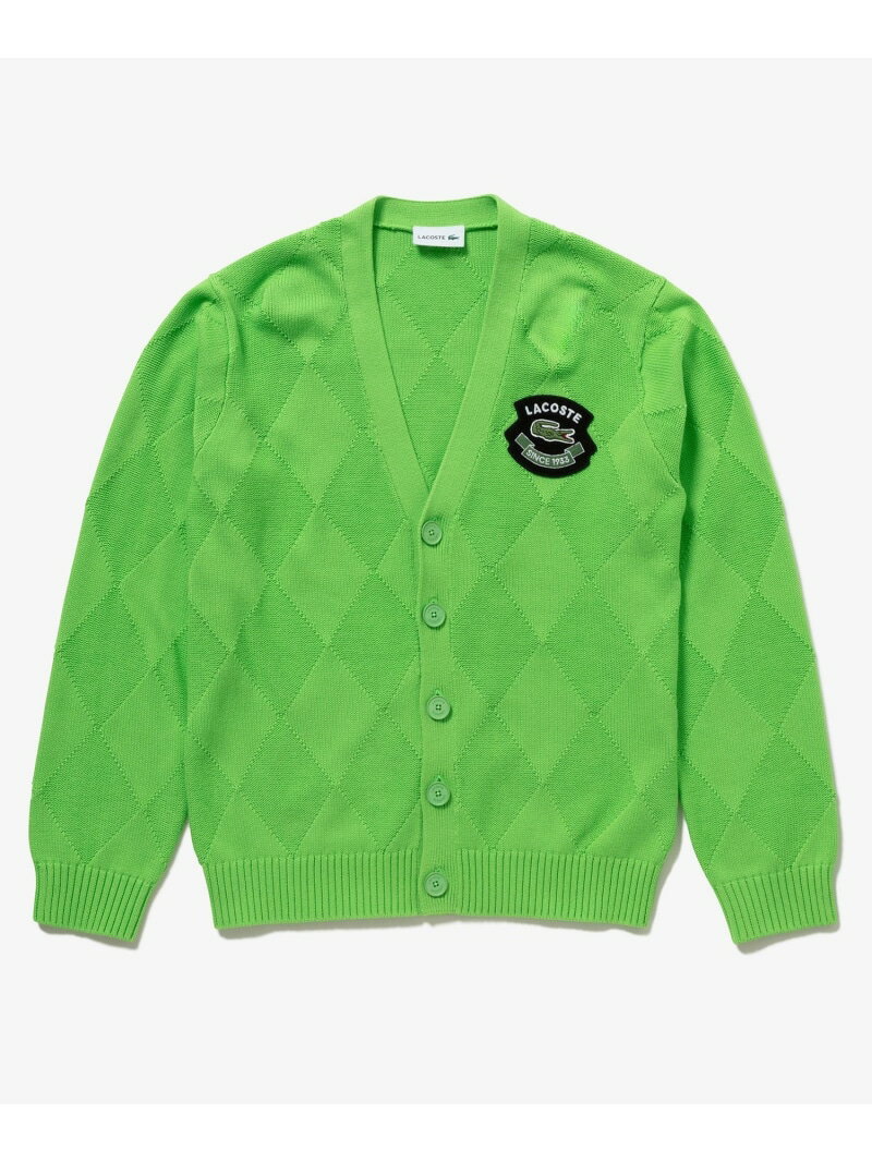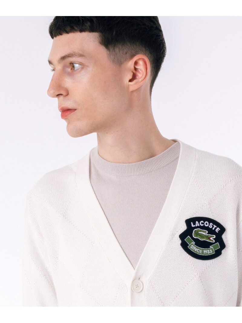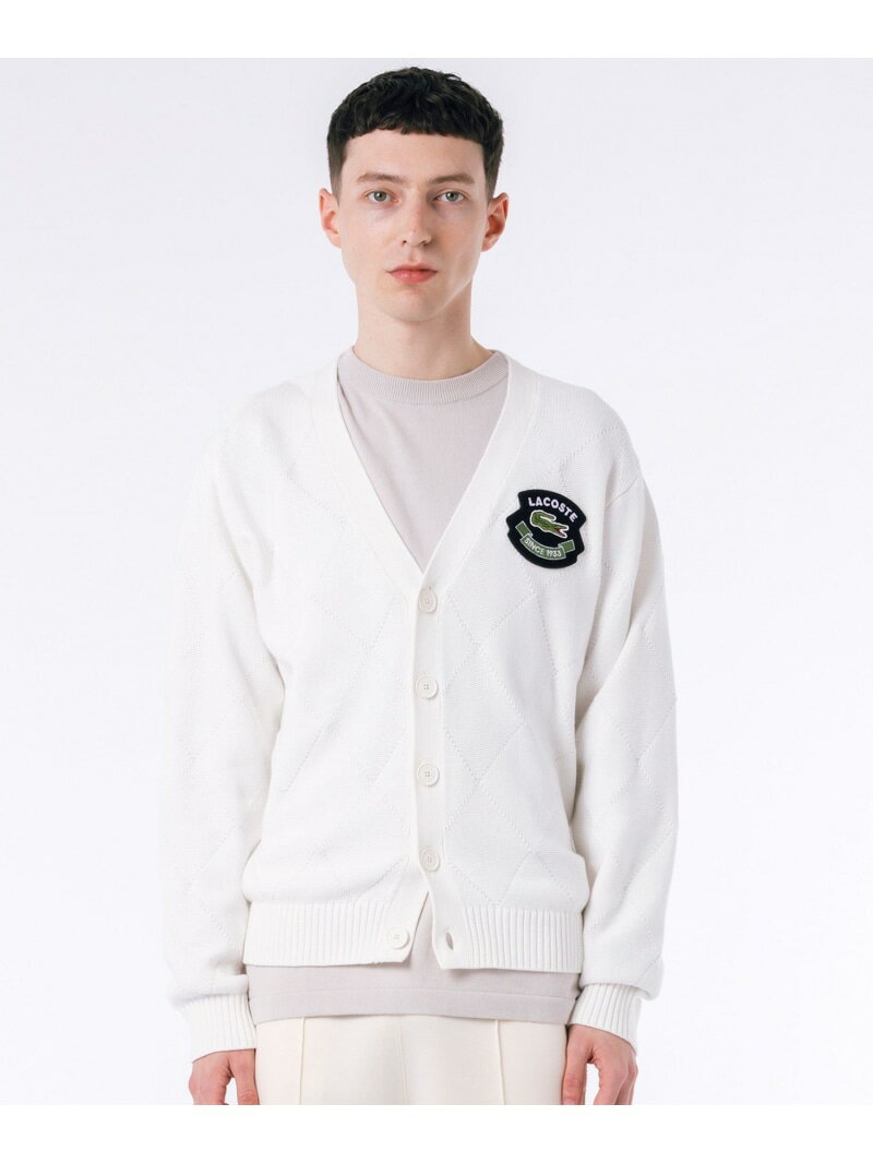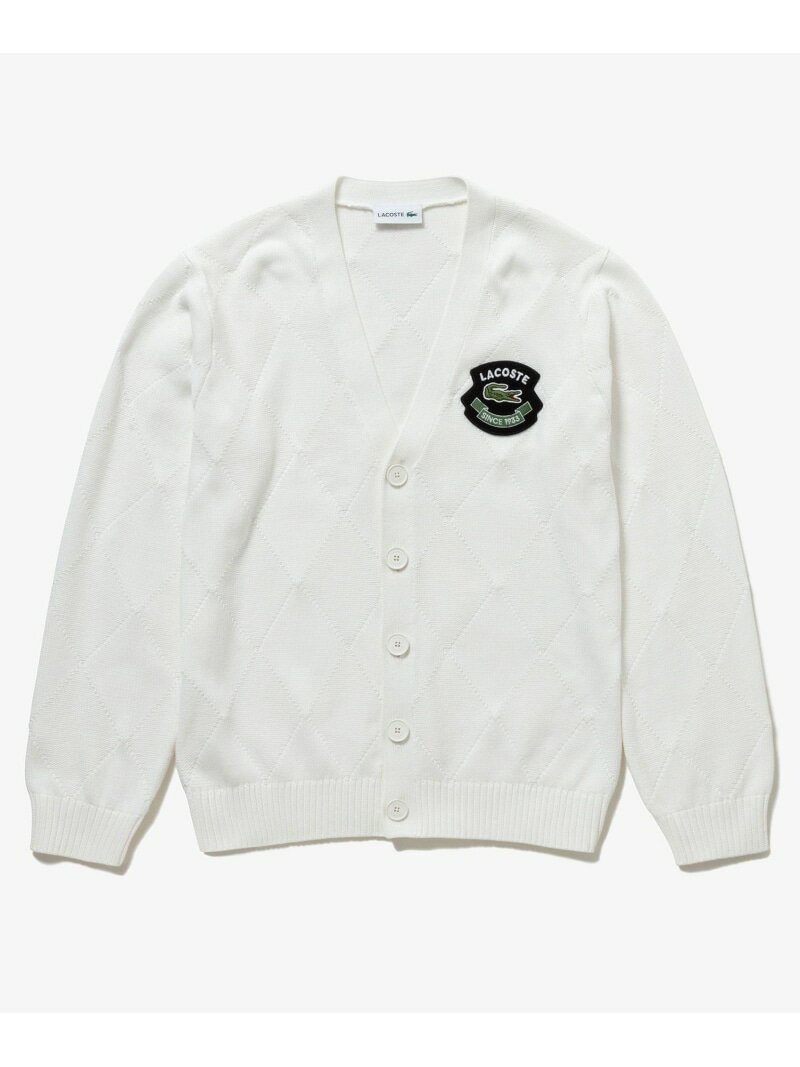 トーナルアーガイル柄 Vネックコットンニットカーディガン LACOSTE ラコステ トップス カーディガン ホワイト グリーン【送料無料】[Rakuten Fashion]