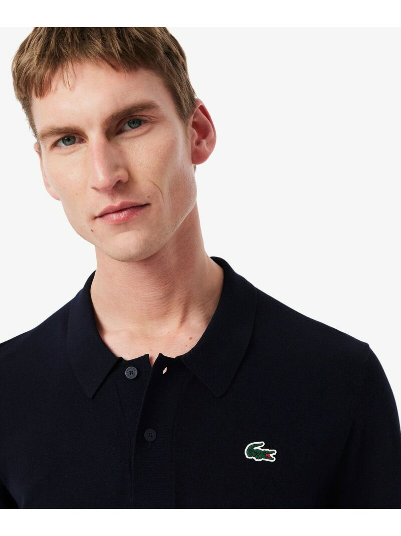 レーヨン混 ワントーンゴルフポロニット LACOSTE ラコステ トップス ポロシャツ ネイビー ホワイト【送料無料】[Rakuten Fashion]