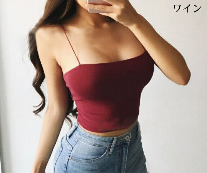 送料無料 キャミソール ミニ丈 ヘソ出し セクシー ショート丈 レディース トップス カットソー ノースリーブ シンプル 無地 単色 ソリッドカラー カジュアル 女性用 婦人用 SEXY S M L