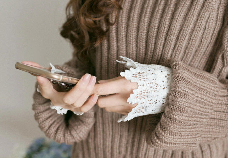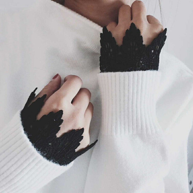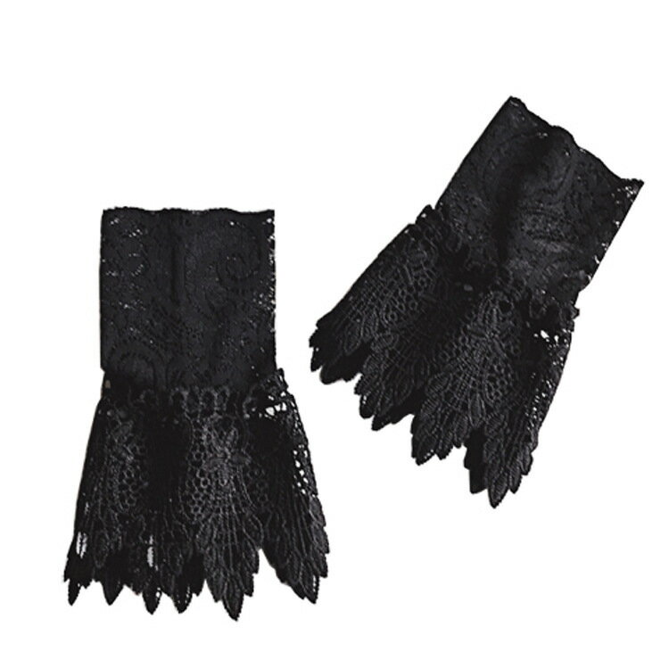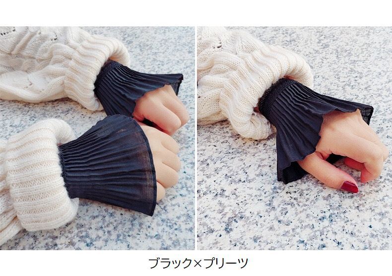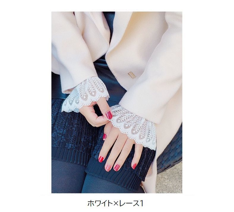 送料無料 付け袖 レディース 女性用 ファッション小物 総レース プリーツ フリル フレア レイヤード 重ね着風 つけ袖 おしゃれ かわいい フェミニン 袖口 モノトーン ホワイト ブラック 白 黒