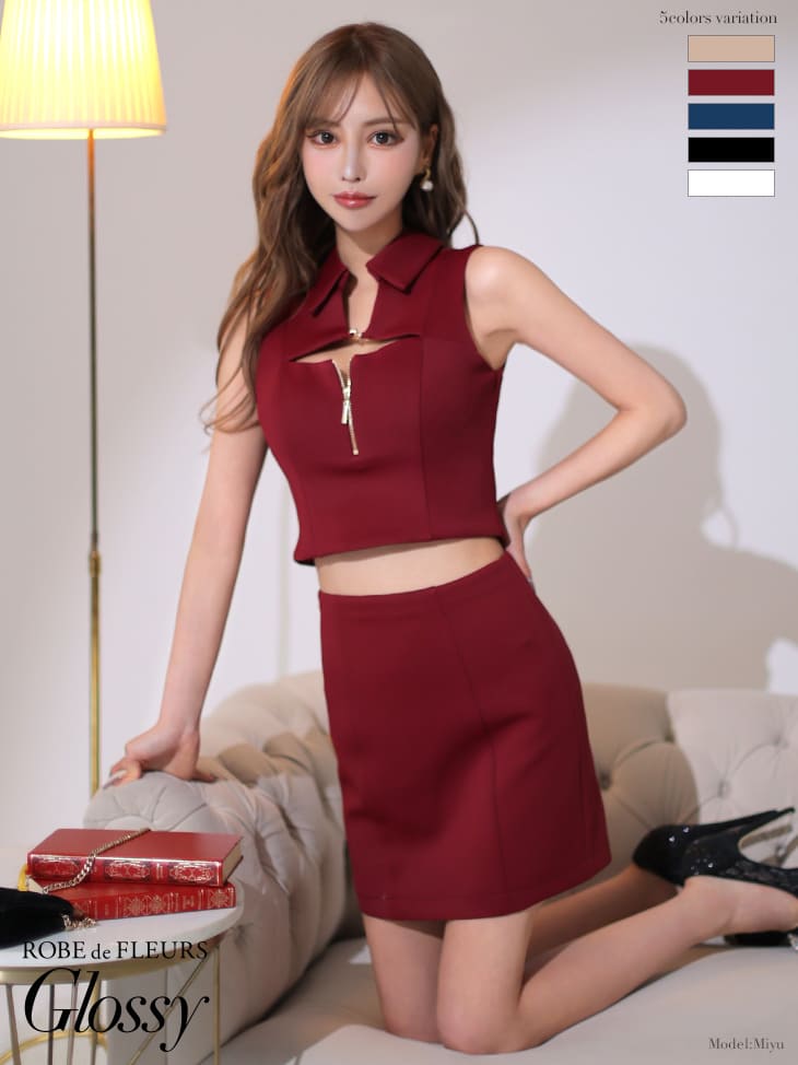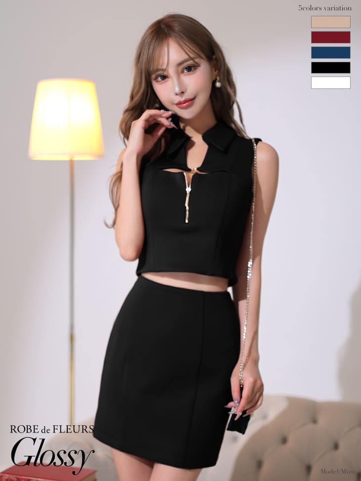 ROBE de FLEURS Glossy キャバドレス セットアップ ミニ タイト XS〜Mサイズ フロントファスナー ローブドフルール グロッシー gl3223 ドレス 大きいサイズ パーティードレス タイトスカート 送料無料セクシー キャバ嬢 キャバクラ ブランド ラウンジ 同伴