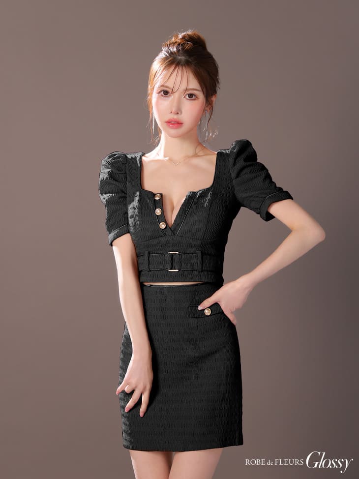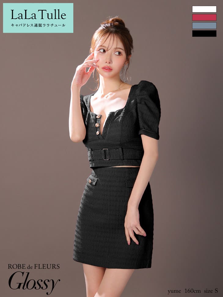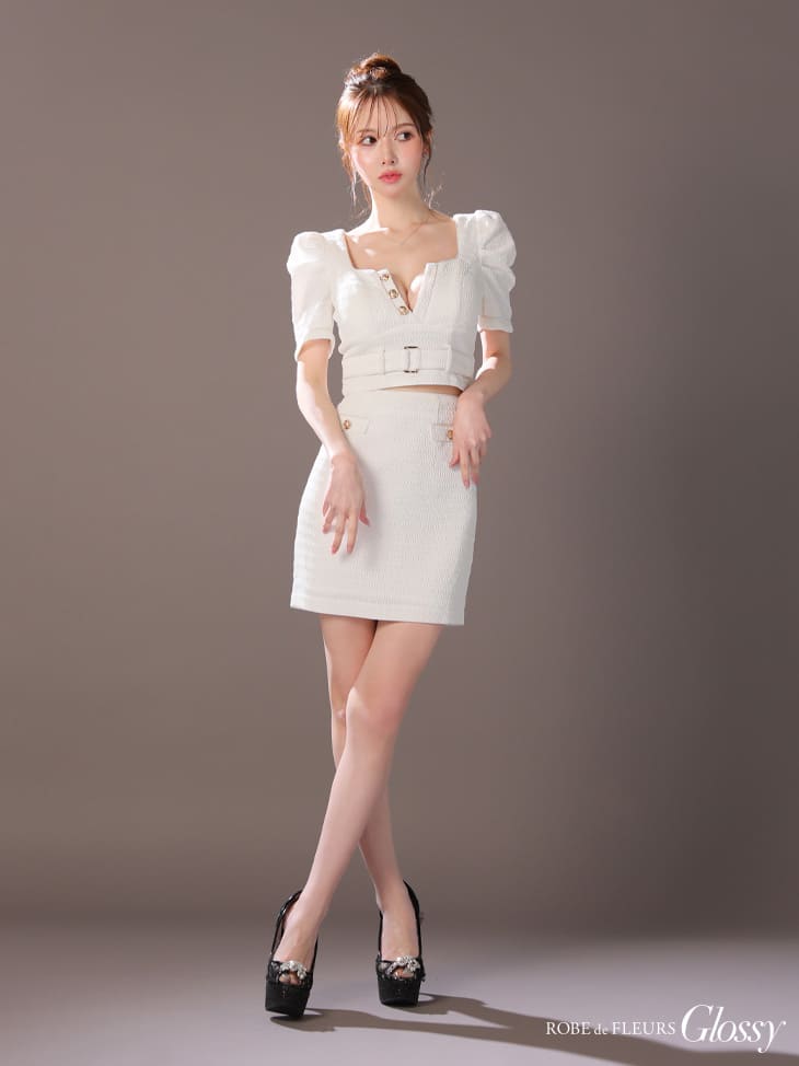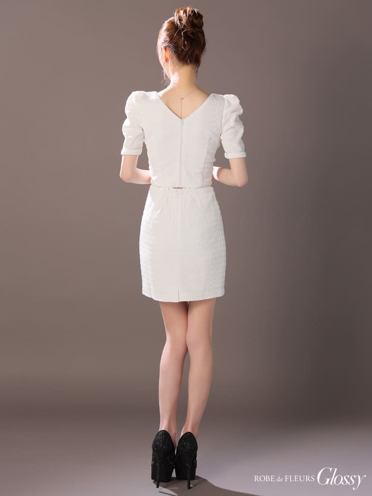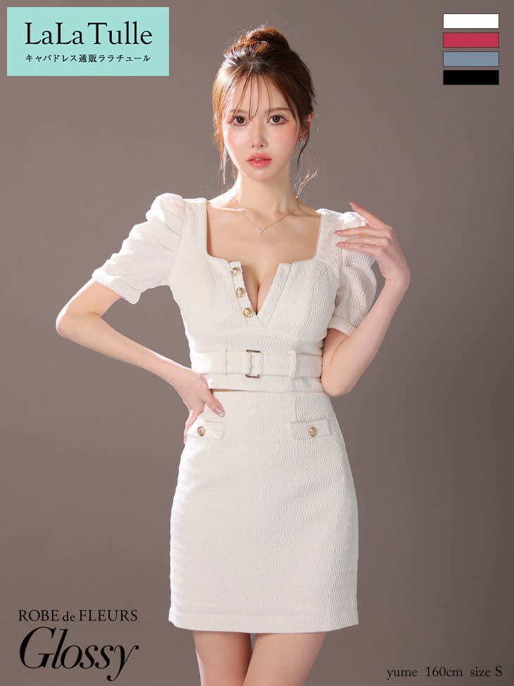 【盛りブラ付き】ROBE de FLEURS Glossy キャバドレス ミニ丈 袖あり パフスリーブ セットアップ XS〜Mサイズ タイト ローブドフルール グロッシー ドレス レディース スクエアネック 送料無料 セクシー キャバ嬢 キャバクラ キャバ 谷間見せ ミニドレス 結婚式 白 gl3909