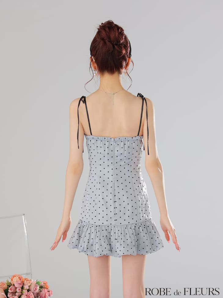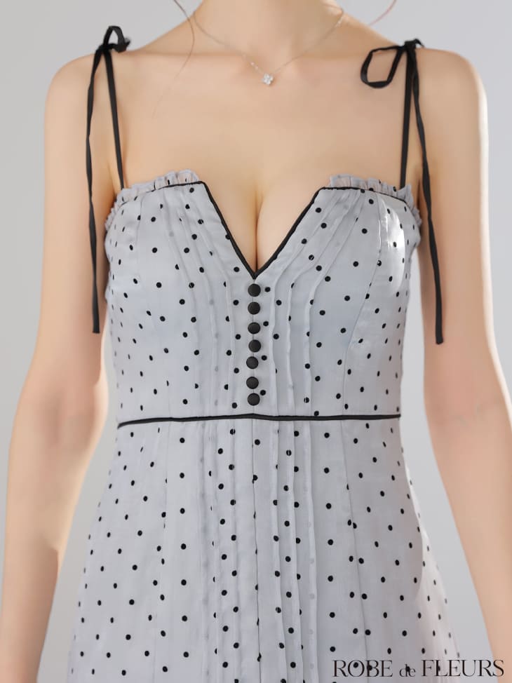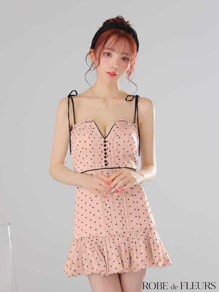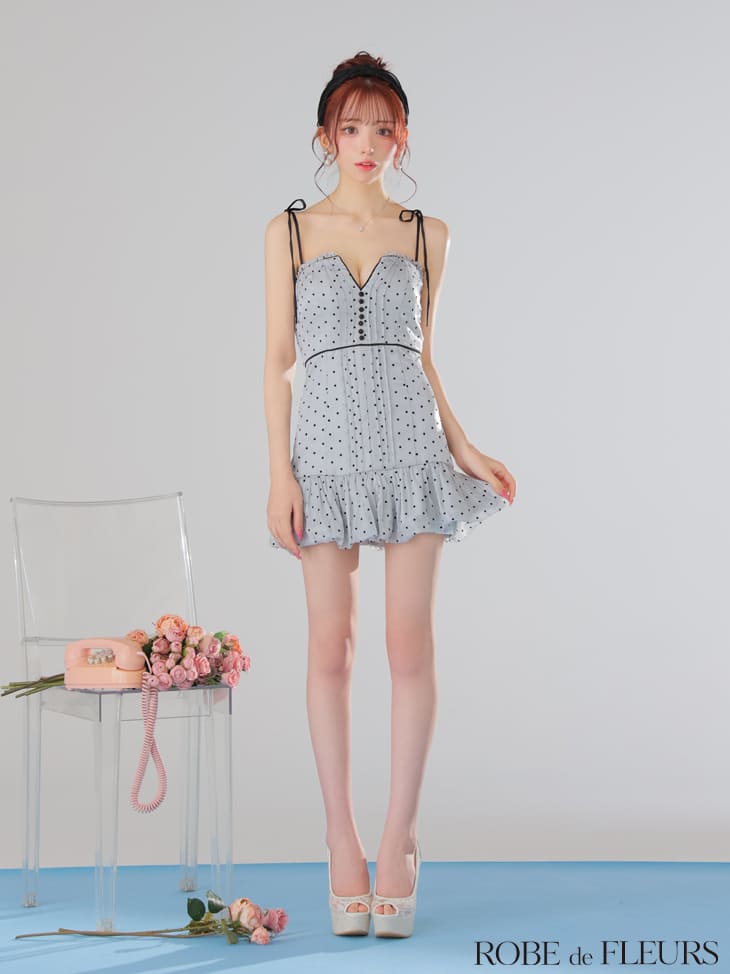 ROBE de FLEURS キャバドレス ミニ ドット柄 セミフレア ワンピース XS〜Mサイズ レディース ローブドフルール キャバ ドレス セクシー ミニドレス キャバ嬢 キャバクラ パイピング キャミソール 上品 谷間見せ かわいい 白 ノースリーブ 送料無料 fm3599