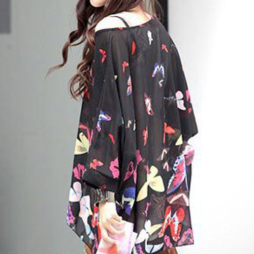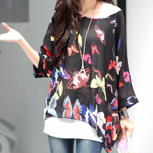 トップス 半袖 七分袖 蝶柄 シフォン シースルー シアー 透け感 ブラウス チュニック 大きいサイズ レディース カジュアル 安い 可愛い 柄物 ロング ロング丈 サマー 夏 涼しい 夏服 ゆったり BIG マタニティにも cpp