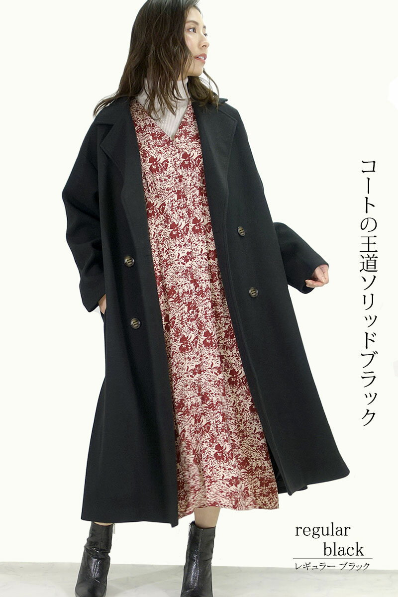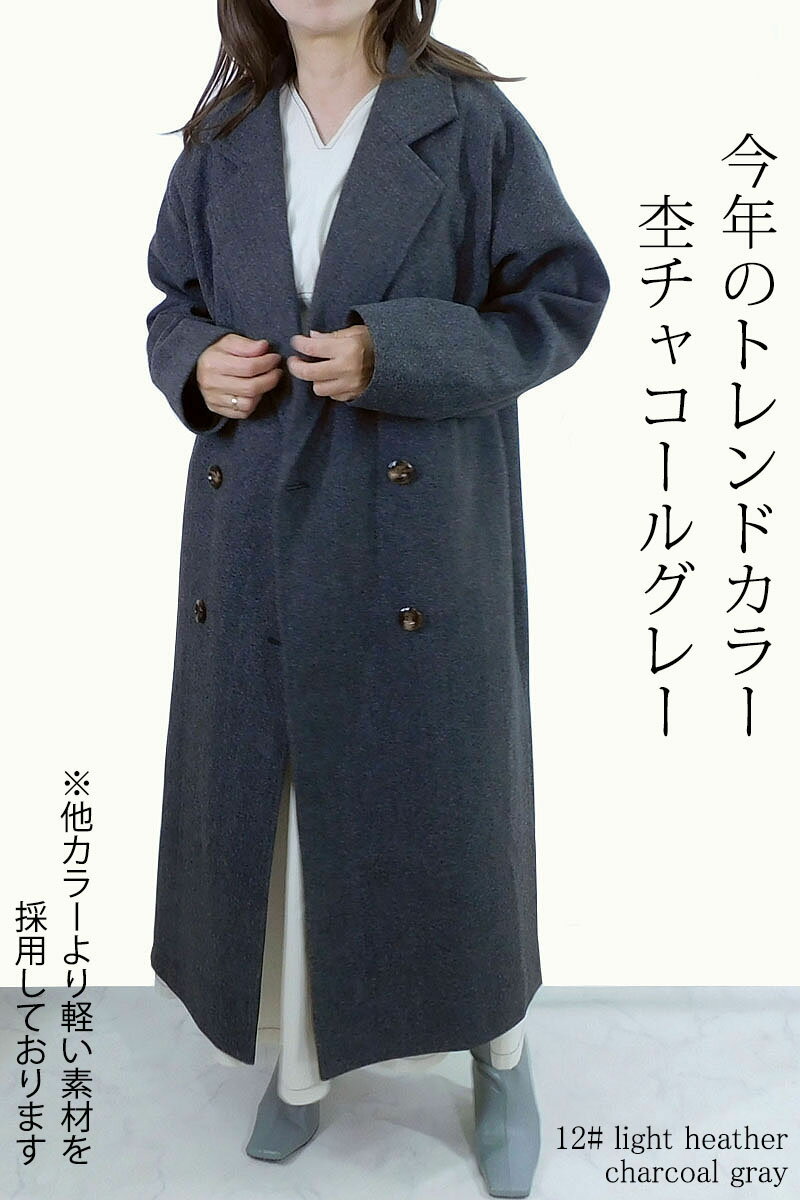 【圧倒的高評価!】 コート レディース 冬 ロング丈 暖かい チェスターコート 黒 杢 ウール風ロングコート アウター きれいめ 40代 30代 20代 ダブル 冬 サイドスリット テーラード ビッグシルエット 冠婚葬祭 フェイクウール 送料無料