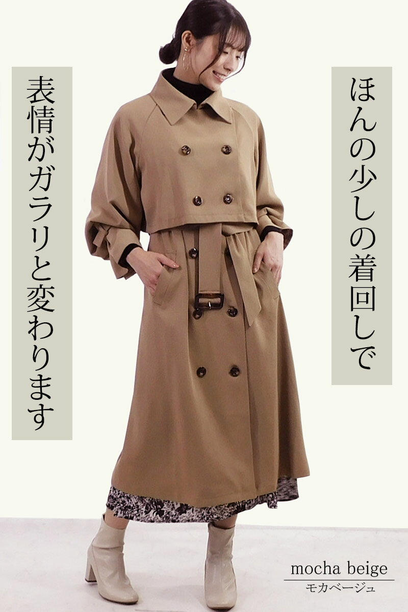 トレンチコート コート レディース 春 トレンチ ショート セパレート 2way 3way トレンチコート ロングコート ジレ ロング ボリューム袖 コートワンピース テロンチコート ジャンスカ 2way ショートトレンチ 秋冬 通勤 オフィス 高機能