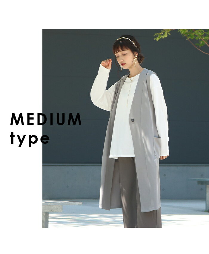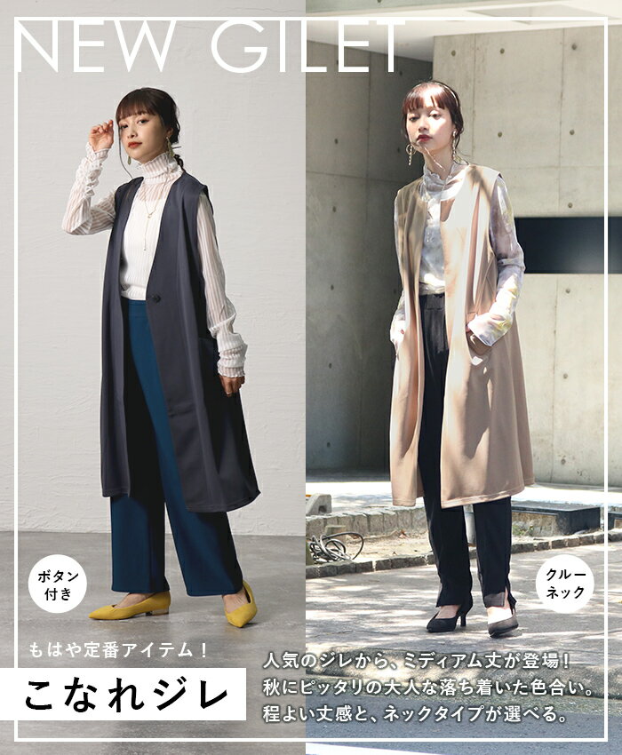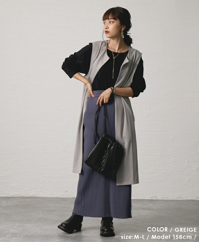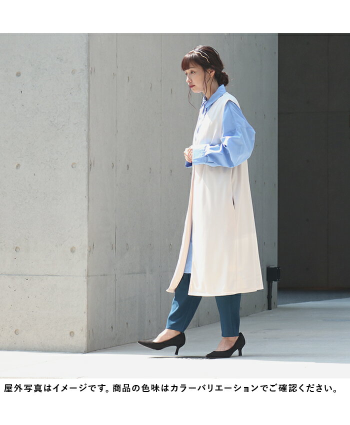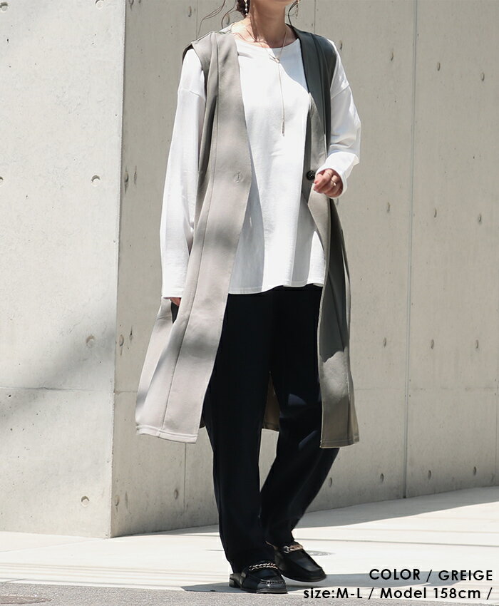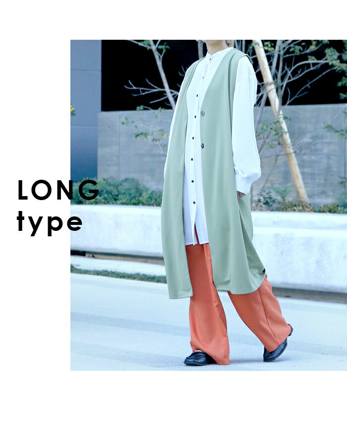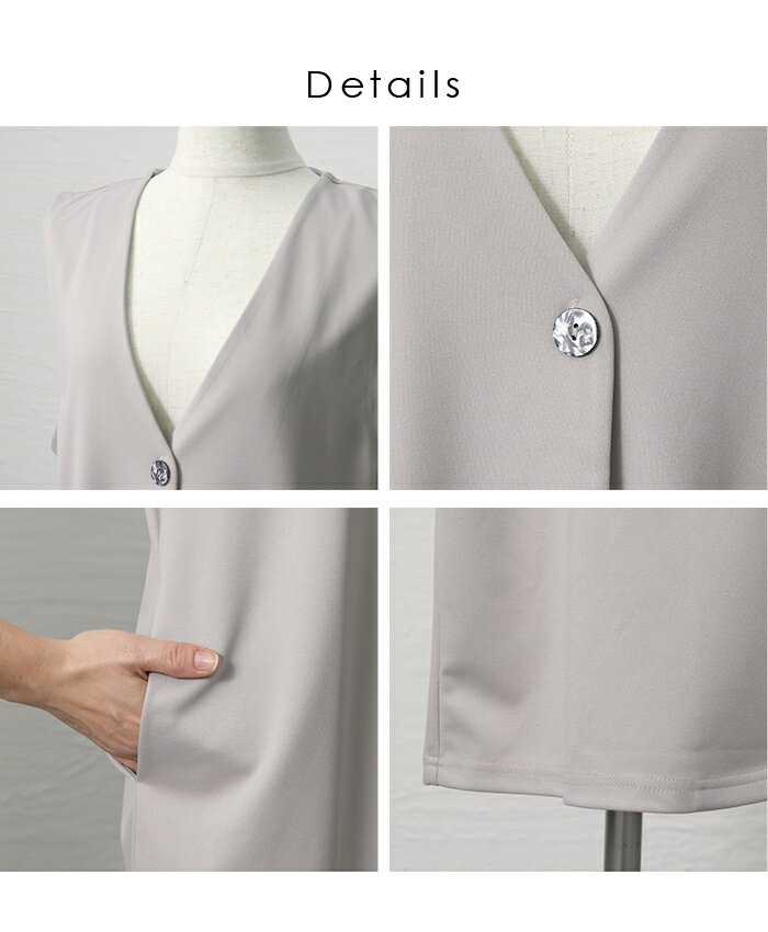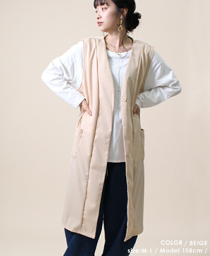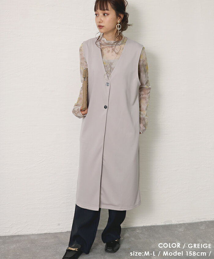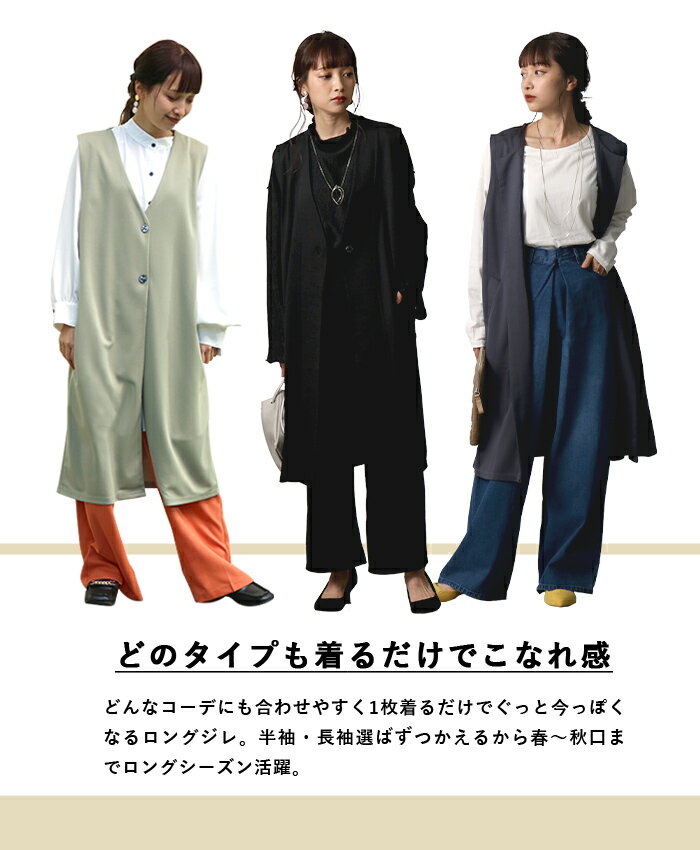 【メール便対応】【ジレ ベスト レディース ロング】ロングジレ ロングベスト レディース 羽織り ロング丈 シンプル おしゃれ お洒落 黒 緑 灰色 肌色 無地 春 夏 秋 ボタン付きロングジレ #3n13-1908 #4n14-1928