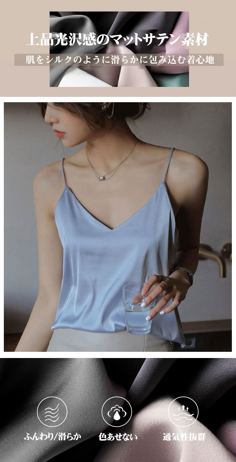 キャミソ一ル 締め付けず 冷感 薄手 タンクキャミ レディース キャミソール サテン サテンキャミソール トラップ おしゃれ シルクタッチ 楽ちん 長め シンプル おしゃれ ストレスフリ一 快適 無地 下着 肌着トップス ポッキリ