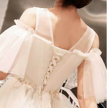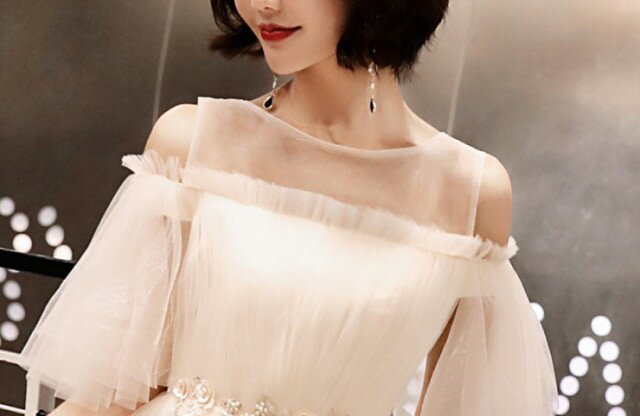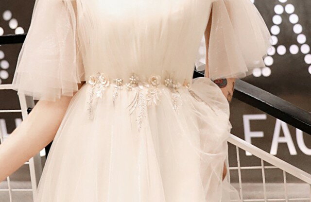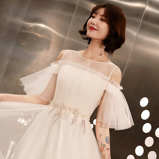 ドレス 結婚式 お呼ばれドレス 20代 パーティードレス ウエディングドレス ミニドレス フレアスカート 花嫁 二次会 チュール 五分袖 袖あり 白 ホワイト Aライン フレア袖 エレガント