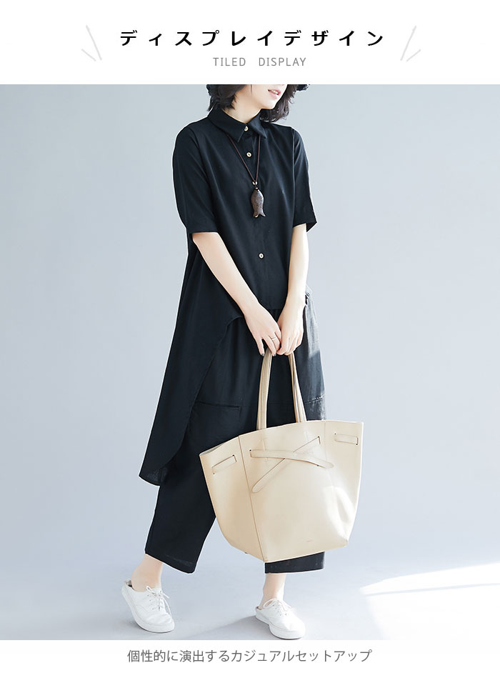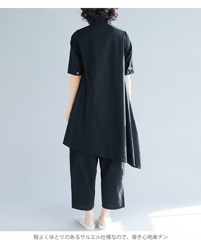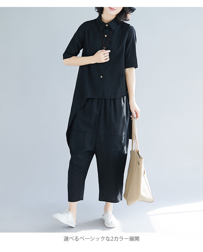【送料無料】セットアップ レディース カジュアルセット Tシャツ 半袖 ロングT サルエルパンツ 九分丈パンツ 上下セット 2点セット ゆったり お洒落 カジュアル 楽チン 夏新作