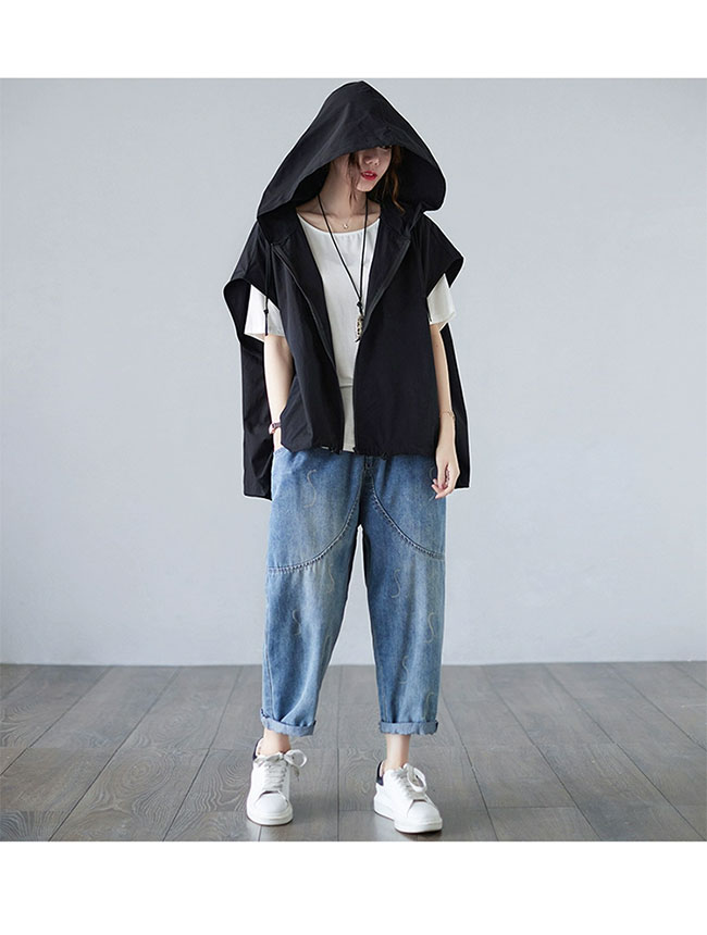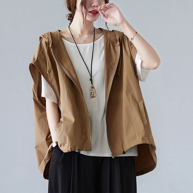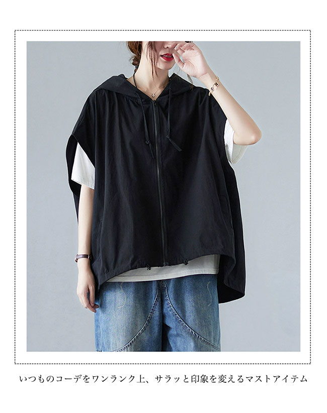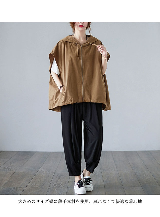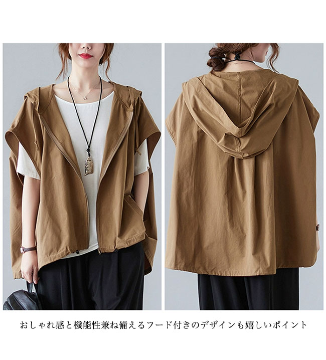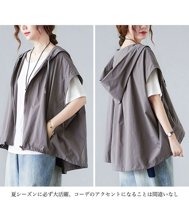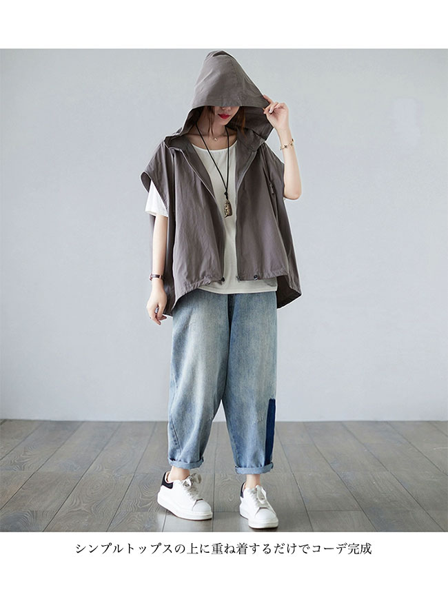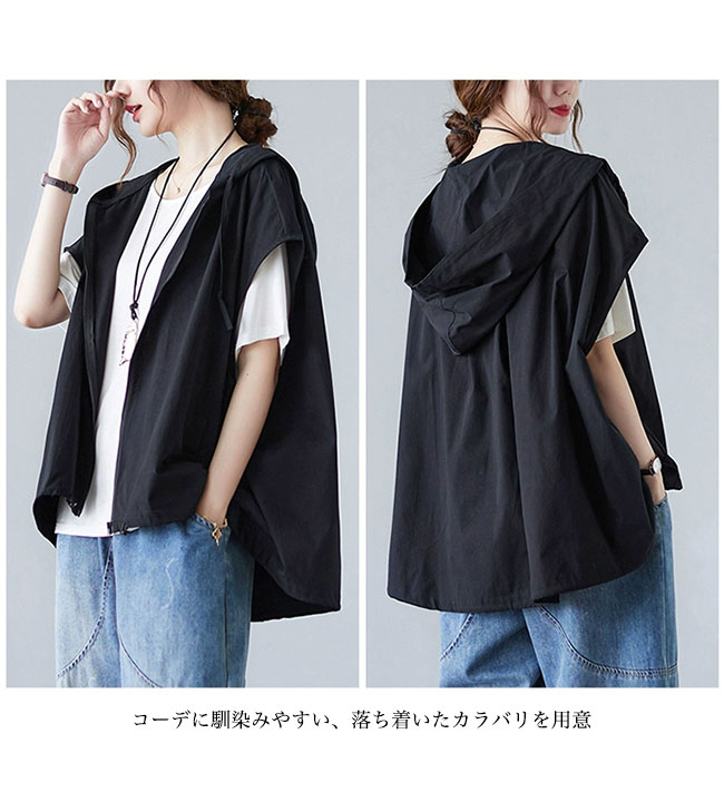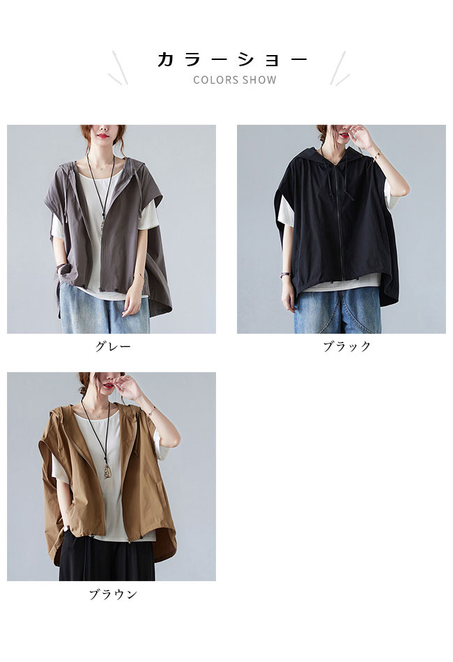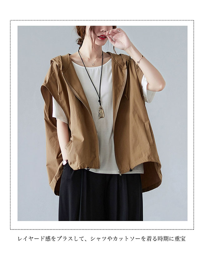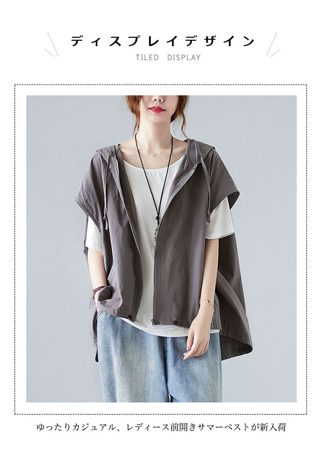フード付き サマーベスト レディース サマーパーカー ノースリーブ 前開き ベスト ゆったり ジレベスト 夏 ジップアップ パーカー 大きいサイズ 袖なし 春秋 レイヤードコーデ ジレ チョッキ フード付きベスト ブラック ブラウン