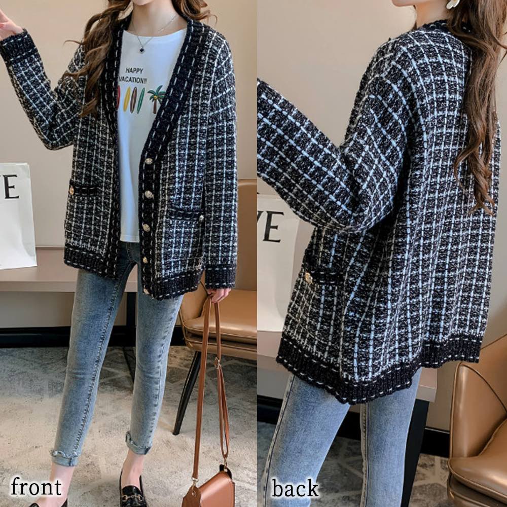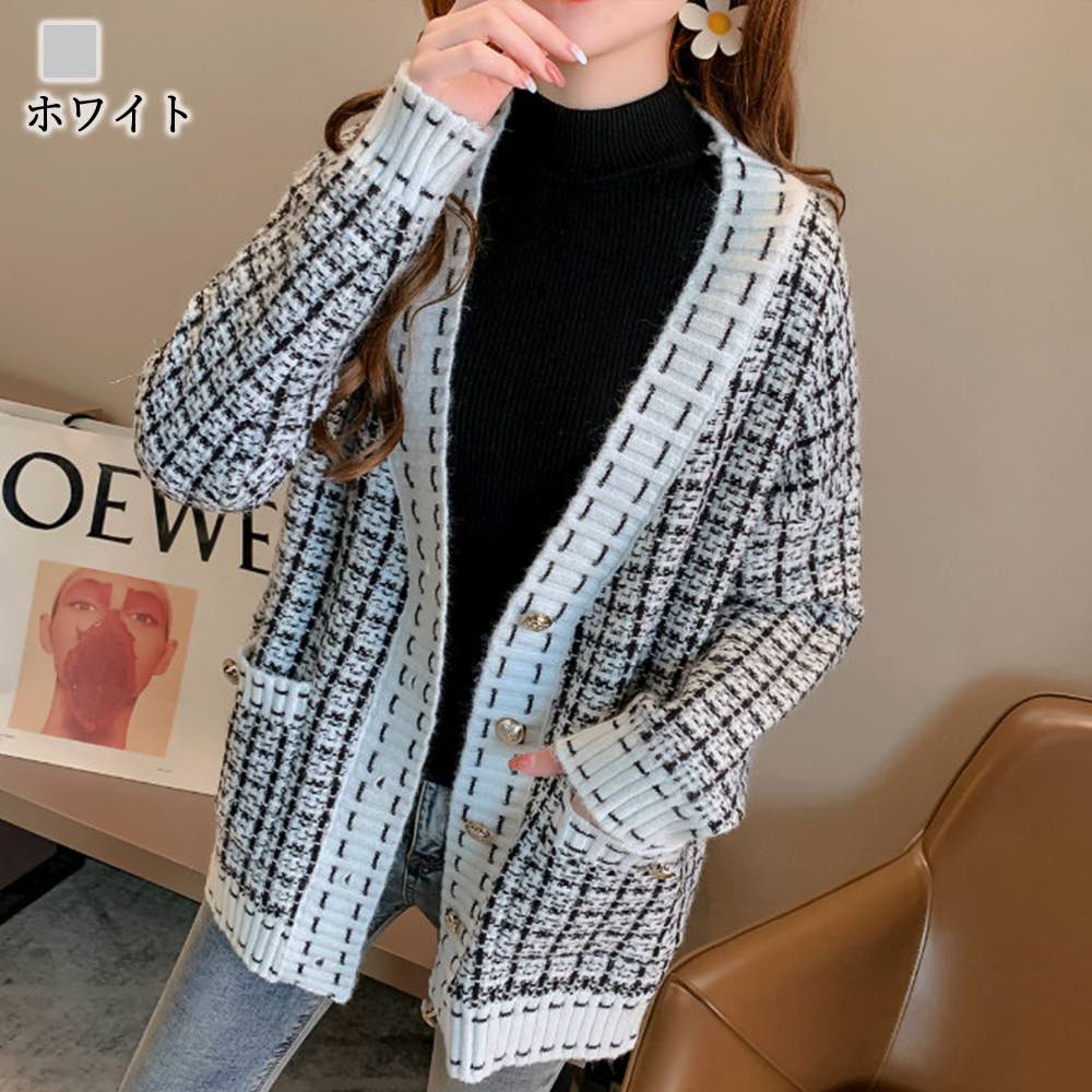 カーディガン レディース チェック柄オーバーカーディガン ニット 生地 きれいめ ゆったり 秋 ブラック 暖かい ジャケット Vネック 厚手 ケーブル ロング あったか ショート丈 丸首 人気 ベージュ オフィス 春 ウール おしゃれ フリース 長袖 ブランド 黒 冬 大きいサイズ