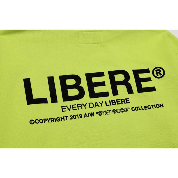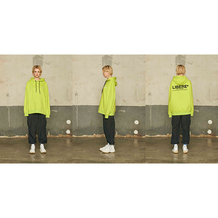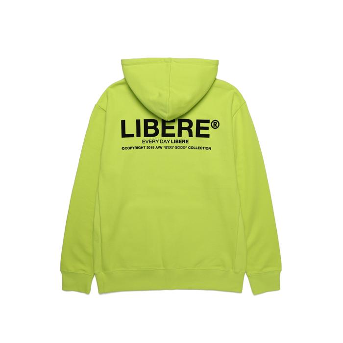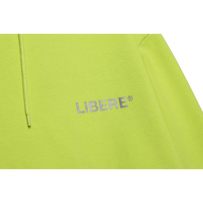 LIBERE リベーレ ロゴ フーディー パーカー プルオーバー 長袖 黄緑 ネオングリーン 綿100% プリント 切り替え 切替 [RF LOGO HOODIE/NEON GREEN] 公式アウトレット