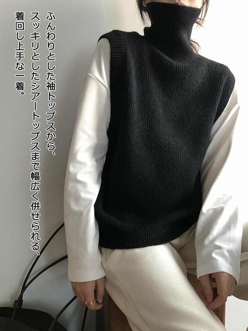 【即納・早秋割引・先着20名様2880円+P5倍】ニットベスト ハイネック ニット ベスト レディース 無地 プルオーバー 秋冬 セーター ニットセーター 冬 ノースリーブ 袖なし トップス ハイネックベスト タートルネック リブニット 重ね着 アウター ショート 防寒 柔らかい 保温