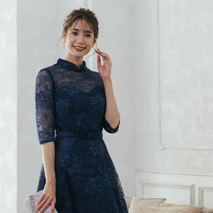 【6,282円クーポン利用で 1/30まで】 パーティードレス 結婚式 ワンピース ドレス 二次会 シースルー ピアノ 発表会 大人 上品 パーティードレス ドレス フォーマル レディース ロング丈 ひざ下 5分袖 長袖 レース 春 夏 秋 冬 20代 30代 40代 チャイナ 親族 母親 顔合わせ