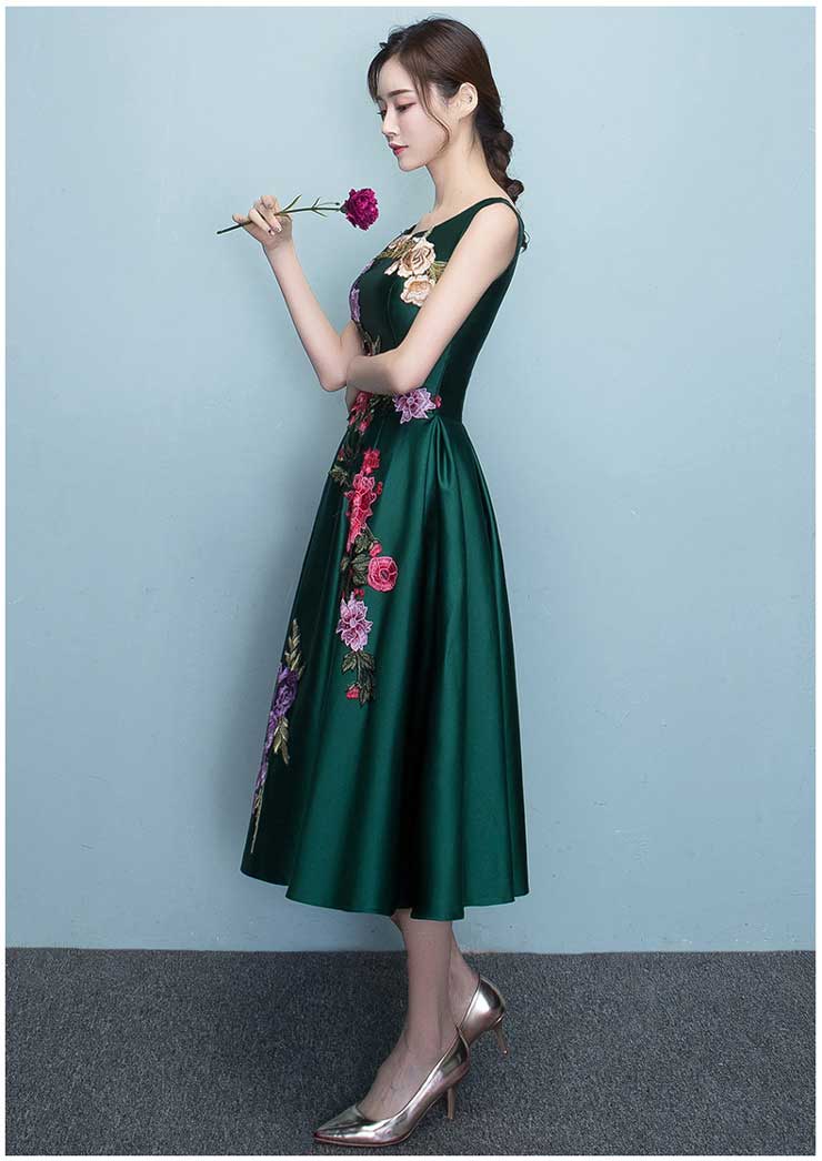 豪華な刺繍が魅力的なサテンフレアーワンピース ■ ワンピース 結婚式 ドレス 結婚式 二次会 入園式 卒業式 大人 上品 入学式 OL パーティードレス ドレス フォーマル レディース ミディアム丈 ひざ丈 レース 刺繍 春 夏