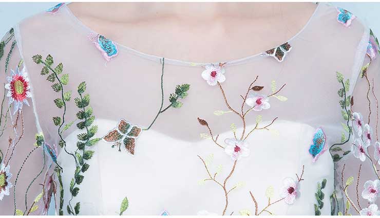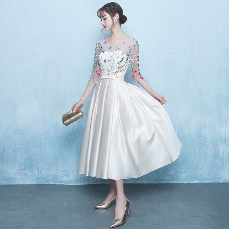 チュール刺繍入りサテンワンピース ■ ワンピース 結婚式 ワンピ 二次会 入学式 入園式 卒業式 大人 上品 OL パーティードレス ドレス フォーマル レディース ミディアム丈 ひざ丈 5分袖・7分袖 レース 刺繍 春 夏 秋 冬