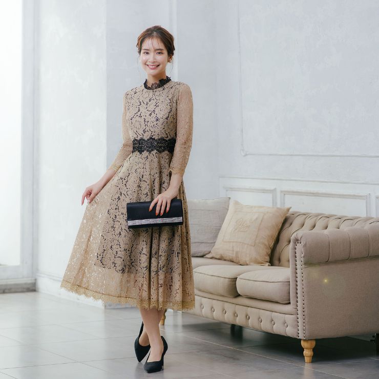【3,573円クーポン利用で 6/20まで】 【期間限定!ヘアアクセ・金箔プレゼント】 パーティードレス 結婚式 ワンピース レース 結婚式 入園式 卒業式 二次会 フォーマル 総レース レディース ロング丈 ひざ下 5分袖 7分袖 花柄 かわいい お呼ばれ 20代 30代 40代 50代 春 夏