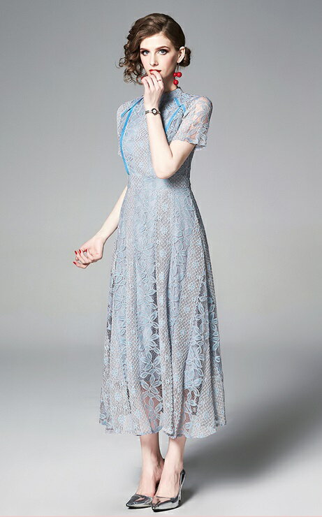 総レースラインハイネックワンピース ■ パーティードレス 結婚式 ワンピース フォーマル 披露宴 卒業式 入学式 発表会 二次会 20代 30代 40代 大人 レディース ロング丈 ひざ下 半袖 レース 春 夏 秋 冬