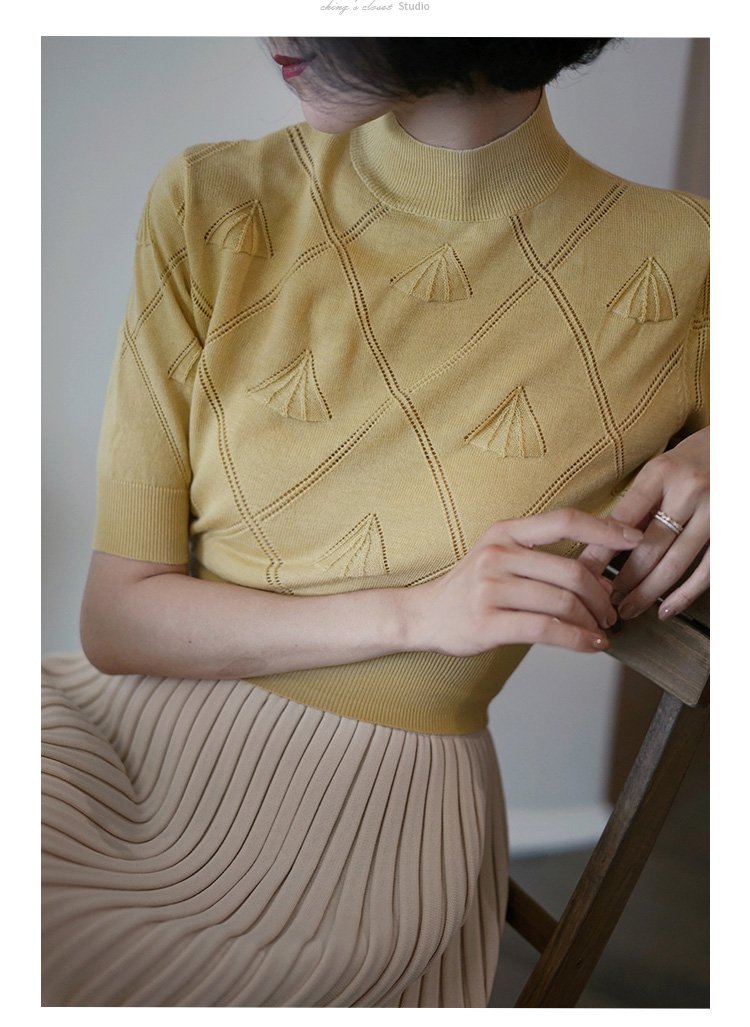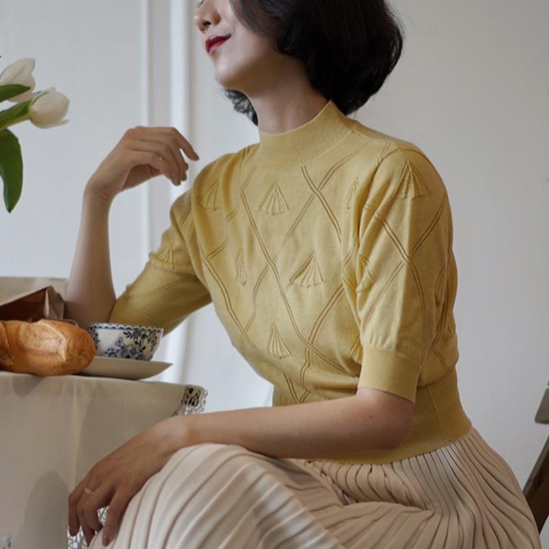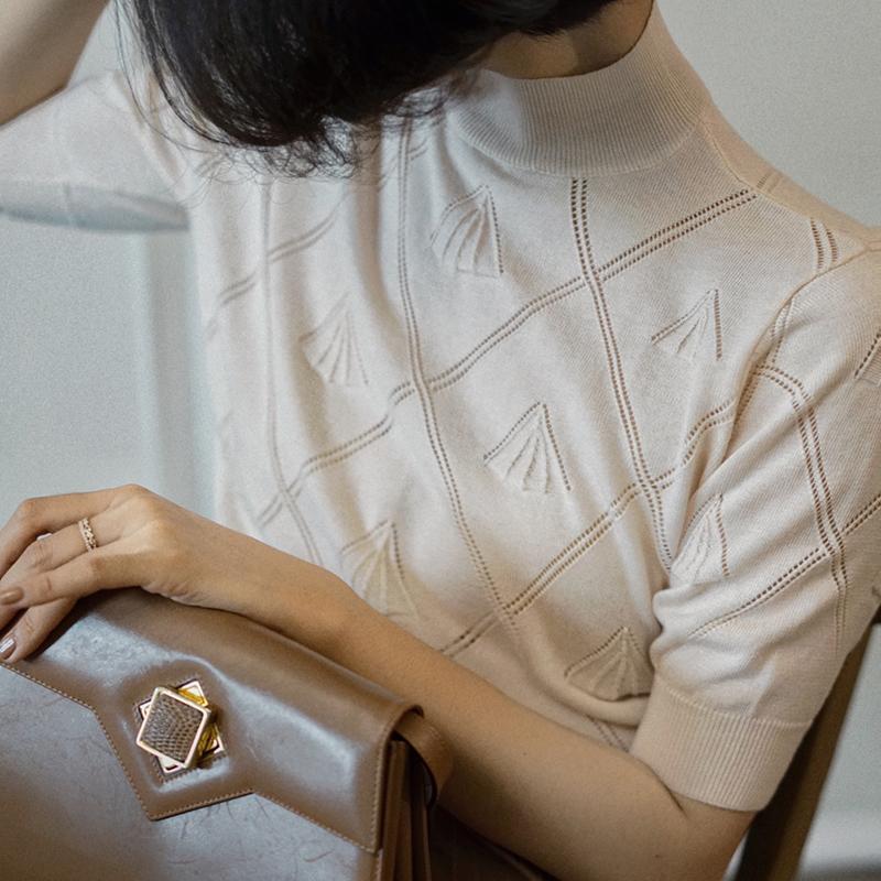 ハイネックニットトップス ■ レディース 半袖 春 夏 秋 冬