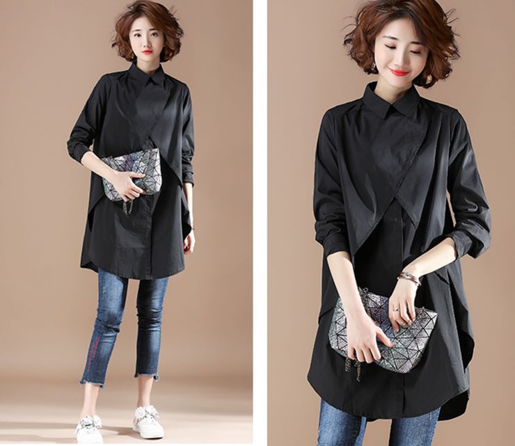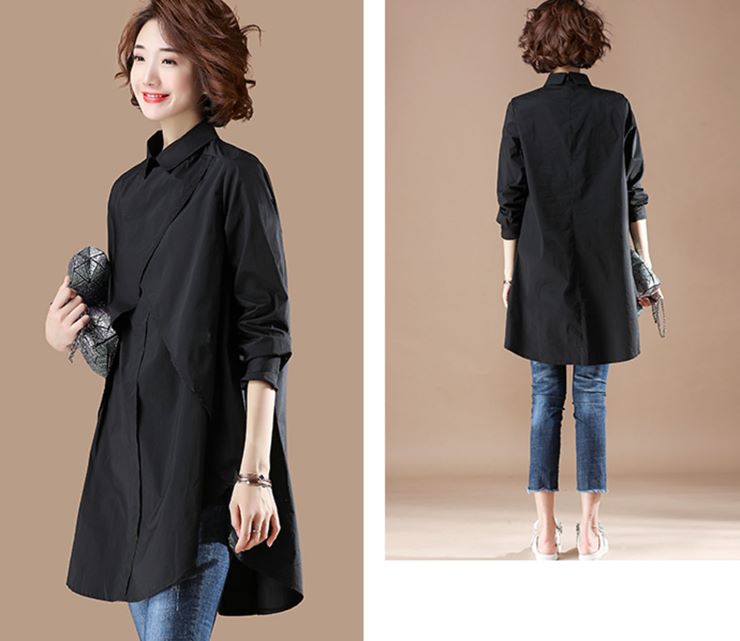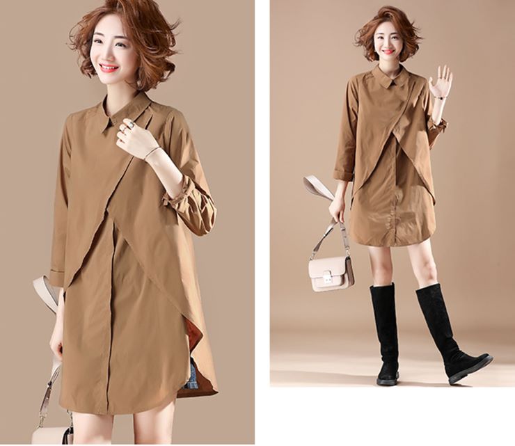 フェイクレイヤード長袖シャツチュニック ■ シャツ かわいい ブラウス セレブ オフィス OL トップス 冷房 通勤 大人 レディース 春 夏 秋 冬