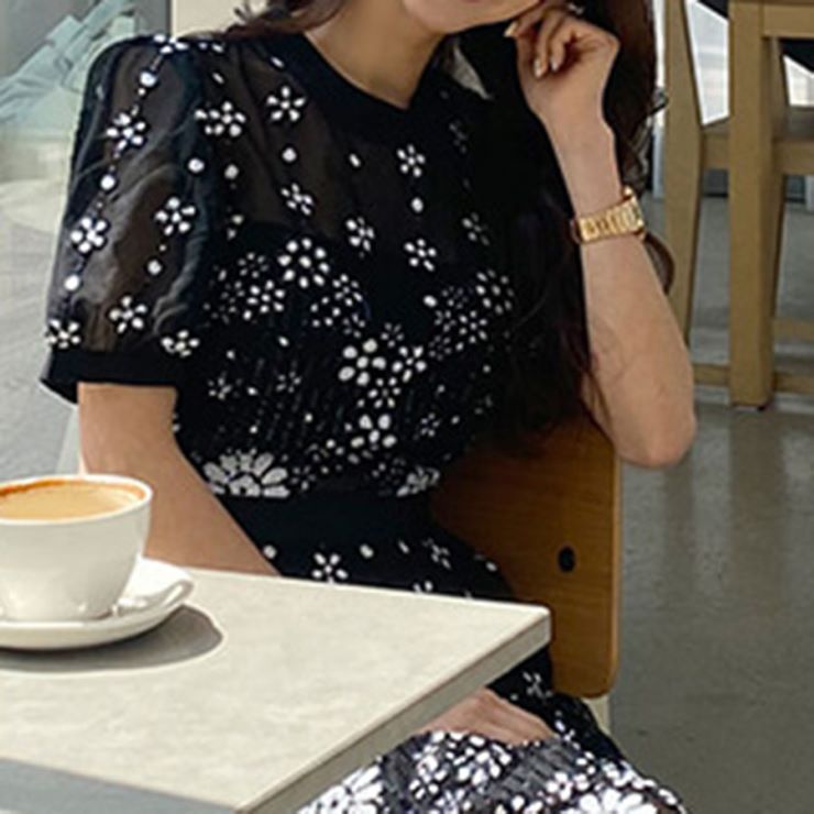 フラワーレースシースルーワンピース ■ パーティードレス 結婚式 フォーマル ワンピース フォーマル 卒業式 入学式 二次会 披露宴 発表会 大人 20代 30代 40代