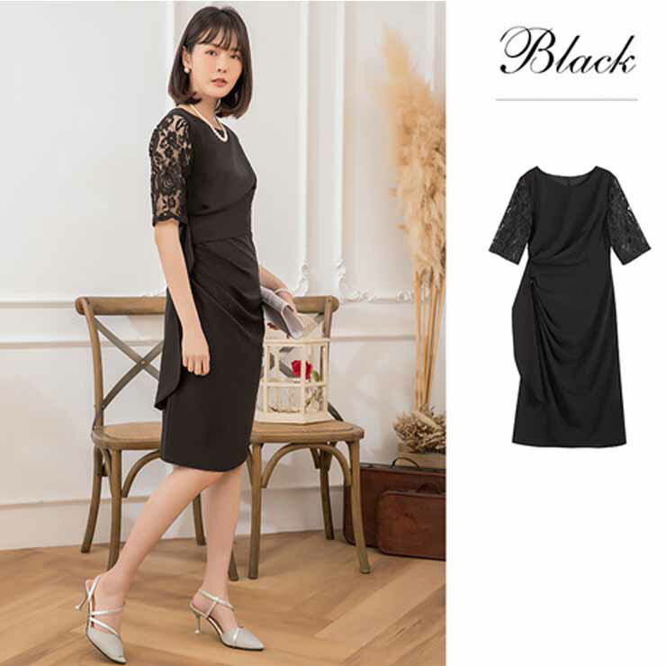 袖レースデザインギャザードレス ■ パーティードレス 結婚式 ワンピース フォーマル 披露宴 卒業式 入学式 発表会 二次会 20代 30代 40代 大人