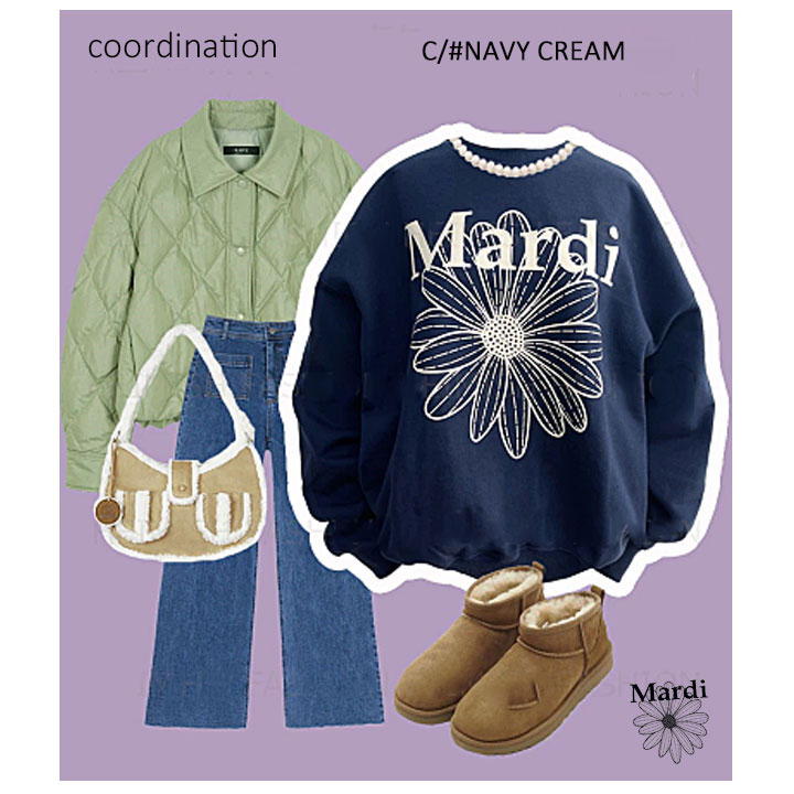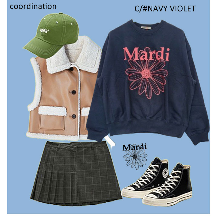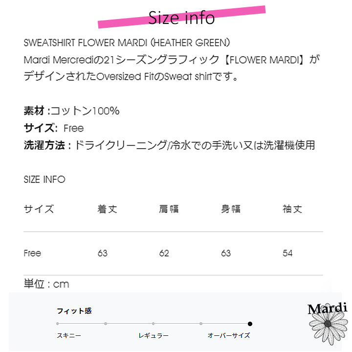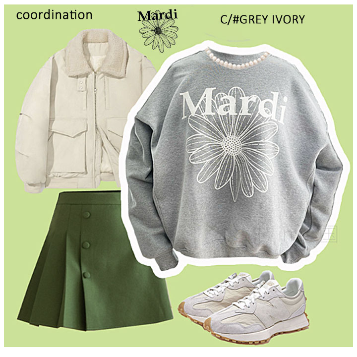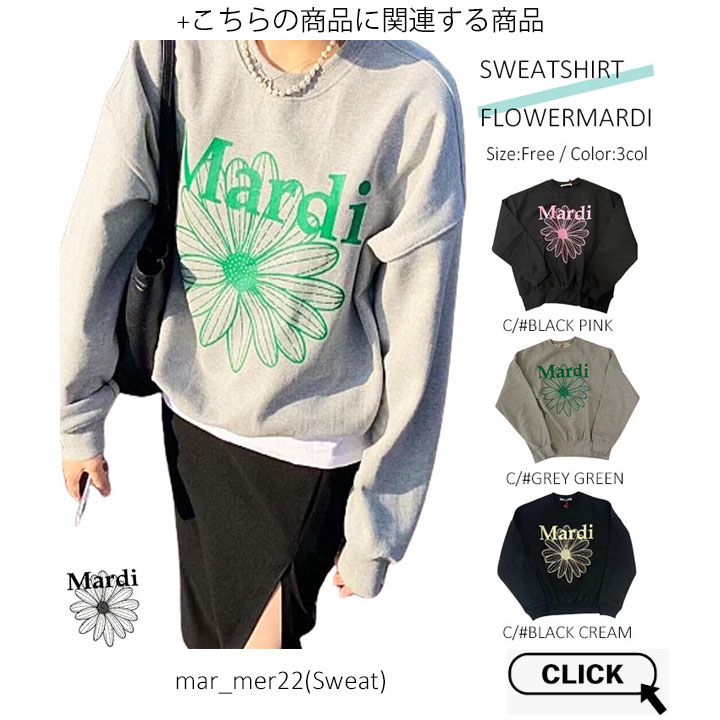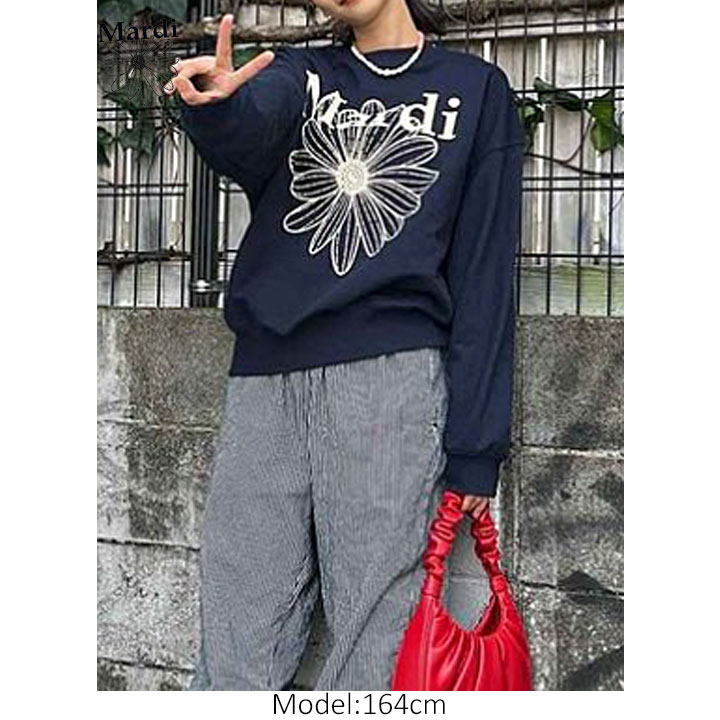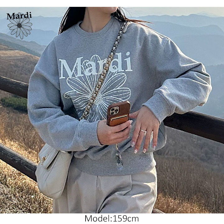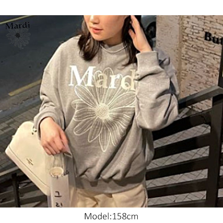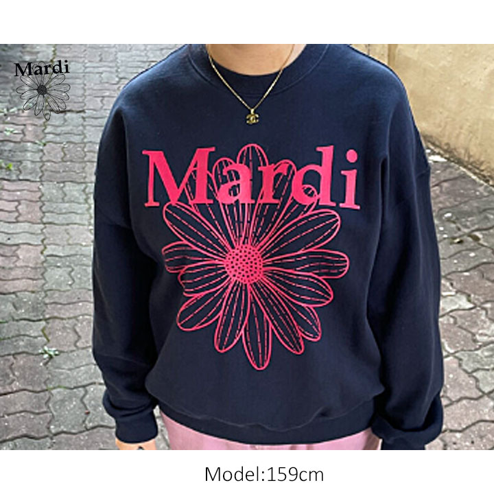 【即日配送カラーあり期間限定5%OFFセール】【韓国人気ブランド】【正規品付属の赤タグ・袋付き】 韓国ファッション マルディメクルディ Mardi Mercredi SWEATSHIRT FLOWERMARDI レディース 長袖 ゆったり 大きめ スエット ストリートファッション 韓国人気ブランド